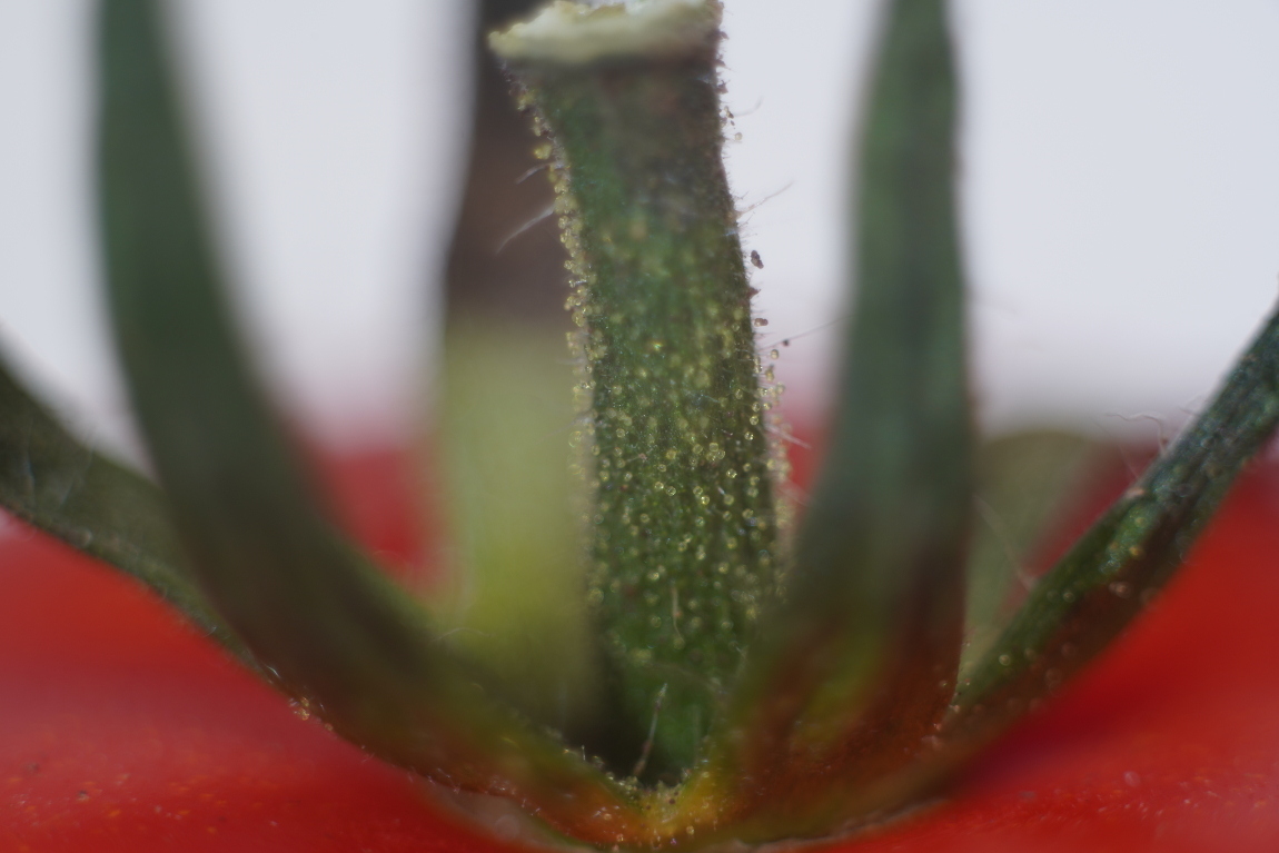 Und noch am Makro-Balgen ein Tomatenfoto bei Offenblende: