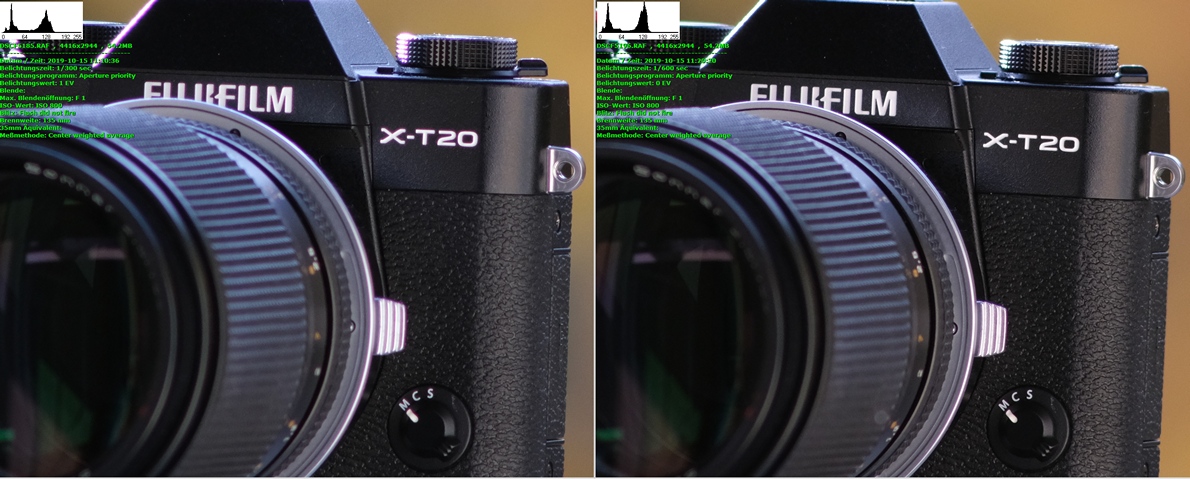 Beim nächsten Vergleich hab ich die Entfernung angeglichen mit LT (weiter vor), beide wieder mit f4.5.