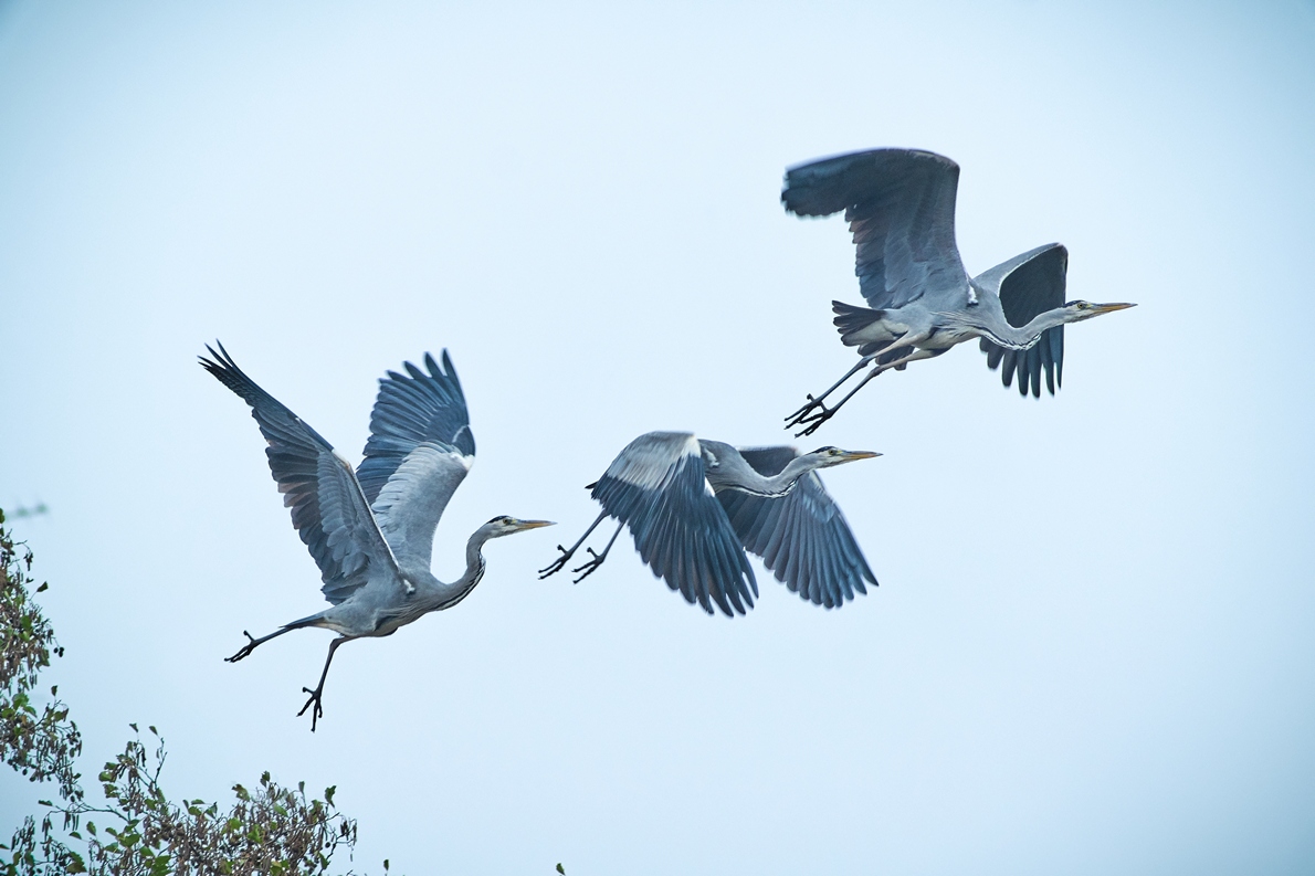 Durch Zufall setzt sich "unser" Jährlich wiederkommender Graureiher 40 Meter Entfernt vom Balkon auf den Baum.