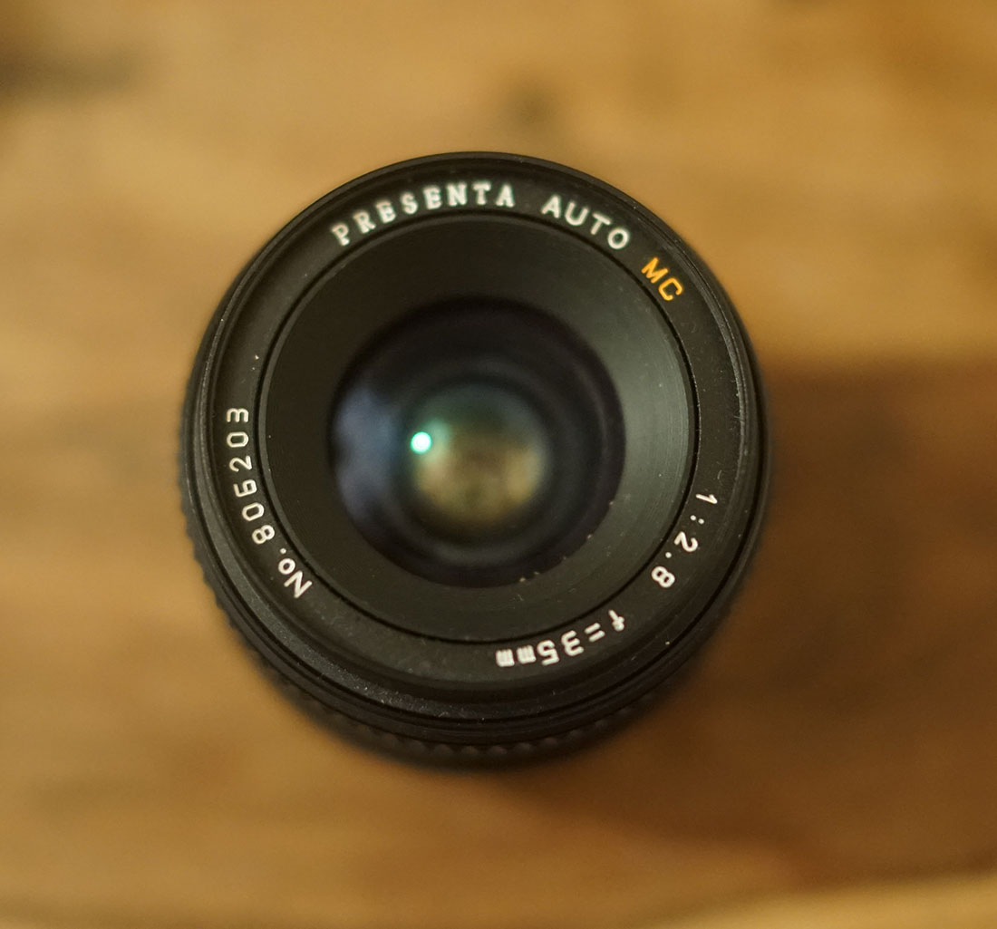 Ich fange mit einem kleinen Sonderling an, der mir eher zufällig zusammen mit einer gebrauchten Canon zugelaufen ist, über den es aber so gut wie keine Informationen im Internet zu finden gibt. Es handelt sich um das Presenta Auto MC 1:2.8 f=35mm im Canon nFD Mount.