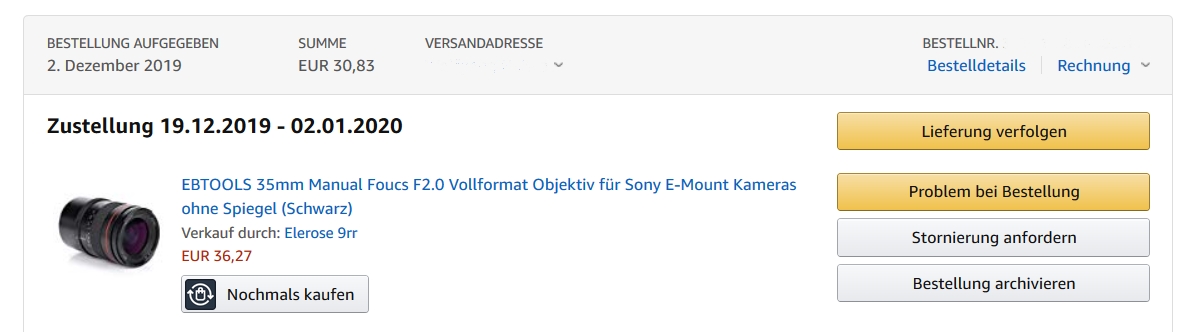 E-Mount Objektiv berichtet. Mit 30,83 Euro incl. Porto das billigste neue Vollformat-Objektiv,