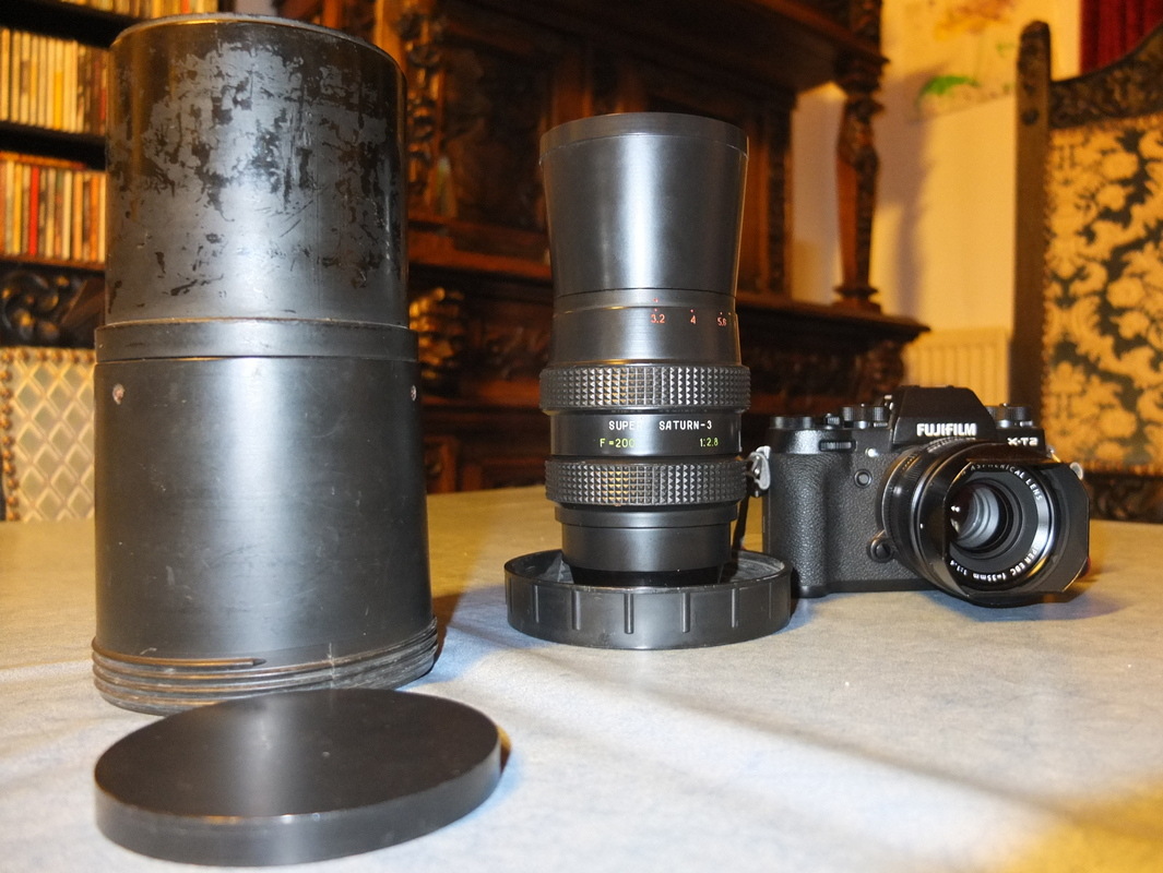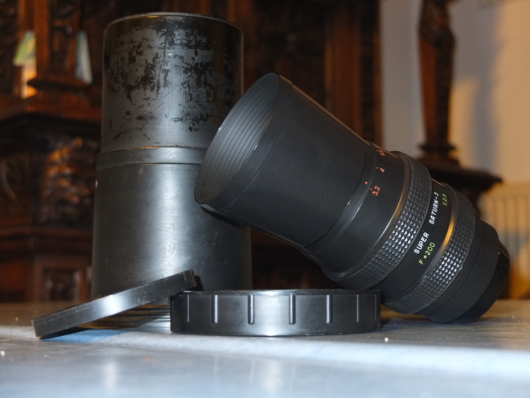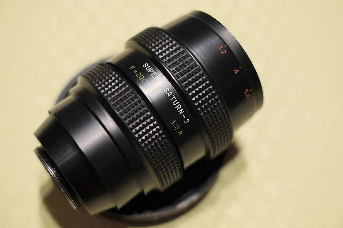 Ich möchte hier ein Objektiv vorstellen, dass mich ebenso begeistert, wie es mir Rätsel aufgibt. 200mm Brennweite, eine Anfangsblende von 2,8 oder 3,2 (näheres siehe unten), beschriftet lediglich mit dem Schriftzug „Super Saturn 3“, „F=200“, „1:2,8“ und den Blendenwerten 3,2 bis 16. Eine Entfernungsskala gibt es nicht. Wenn ich richtig gezählt habe 16 Blendlamellen, eine Nahgrenze von ca. 3 Metern und ein Durchmesser von 72 oder 77mm, genauer kann ich das auf die Schnelle nicht ausmessen. 850 Gramm, ca. 12,5 cm eingefahren ohne die noch mal so lange Sonnenblende. Ausgefahren nur wenige Zentimeter länger, wobei der Fokusring locker über 300 Grad läuft. Die Blende rastet nicht ein, sondern läuft stufenlos durch.