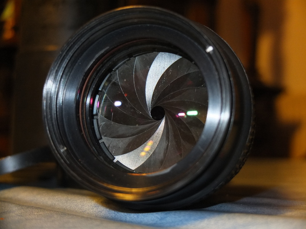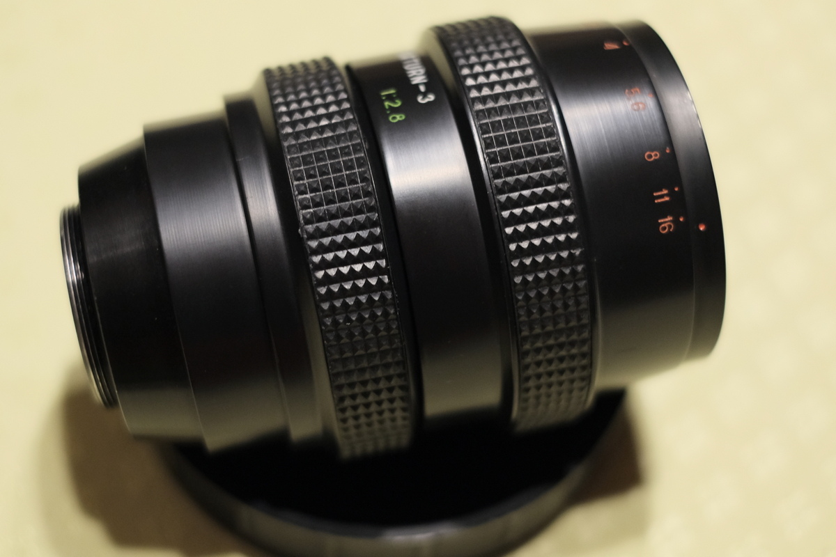 Lediglich eine einzige Seite habe ich (dank dieses Forums) gefunden, dort fragt in den USA jemand mit einem gleichen Objektiv ergebnislos nach Infos. Allerdings steht auf seinem Exemplar wohl noch „Made in Rossia“ mit „o“. Das macht es nicht unmysteriöser. Der Köcher worin das Objektiv verpackt ist, und der Name Saturn lassen auch mich an Russland, bzw. eher die UDSSR denken – aber warum lateinische und nicht kyrillische Buchstaben? Und was sollen die Schrauben mittig am Köcher? Und die an der Gewindefassung des Selben? Die Gummierung an den Ringen und die Blendlamellen weisen für mich auf eine Entstehungszeit in den 1970 bis 1980er Jahren hin.