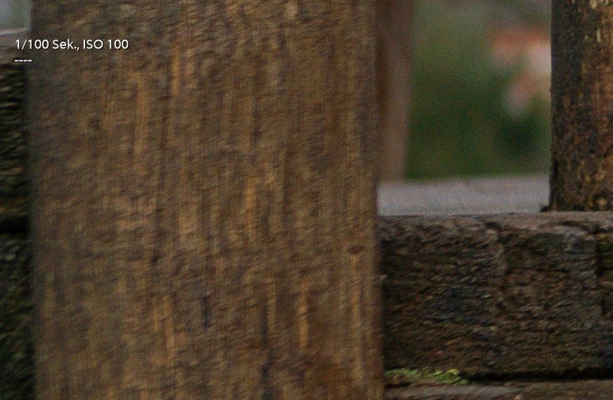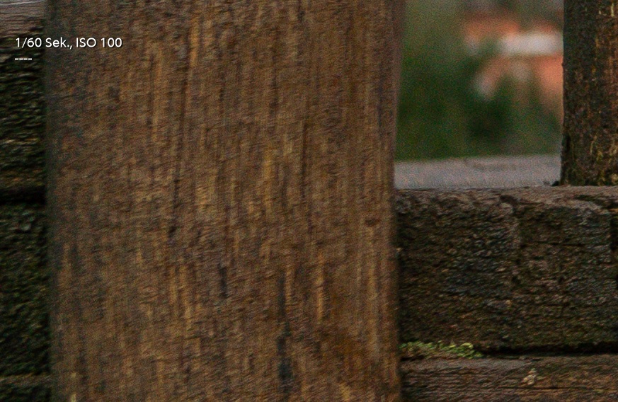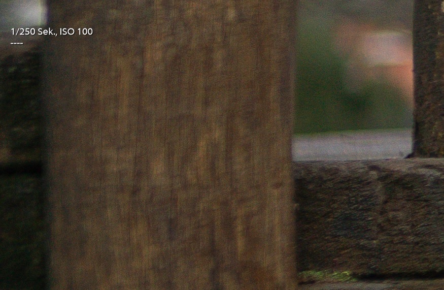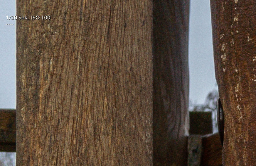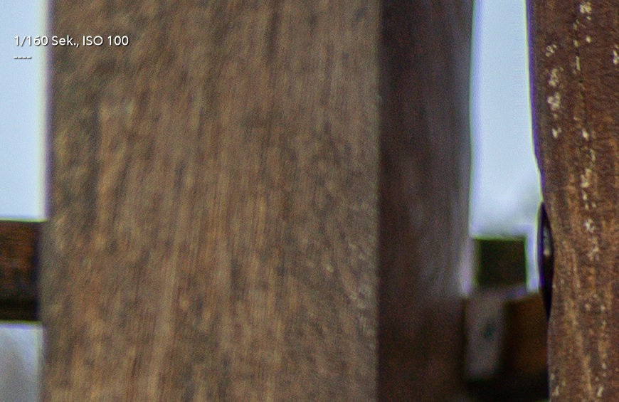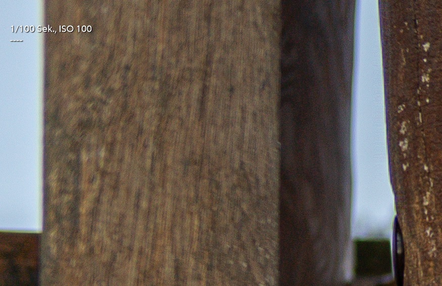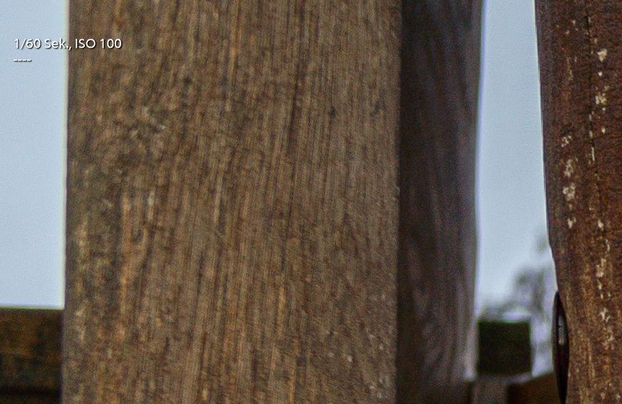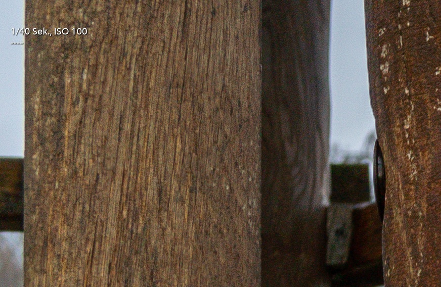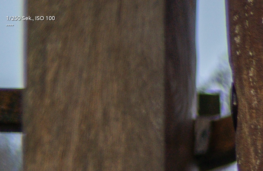 Und zum Abschluß der Schärfereihe Crops aus der linken oberen Bildecke (Achtung: das linke Brett liegt vor der Schärfeebene - hier muss ich beim nächsten Mal besser aufpassen und das gerade noch sichtbare rechte Brett als äußere Bildgrenze nehmen)