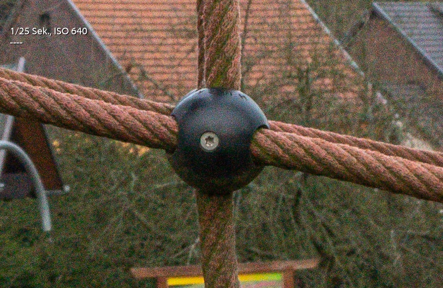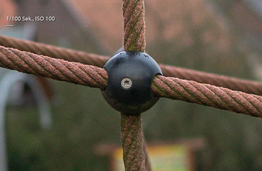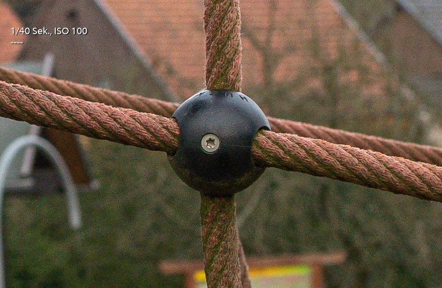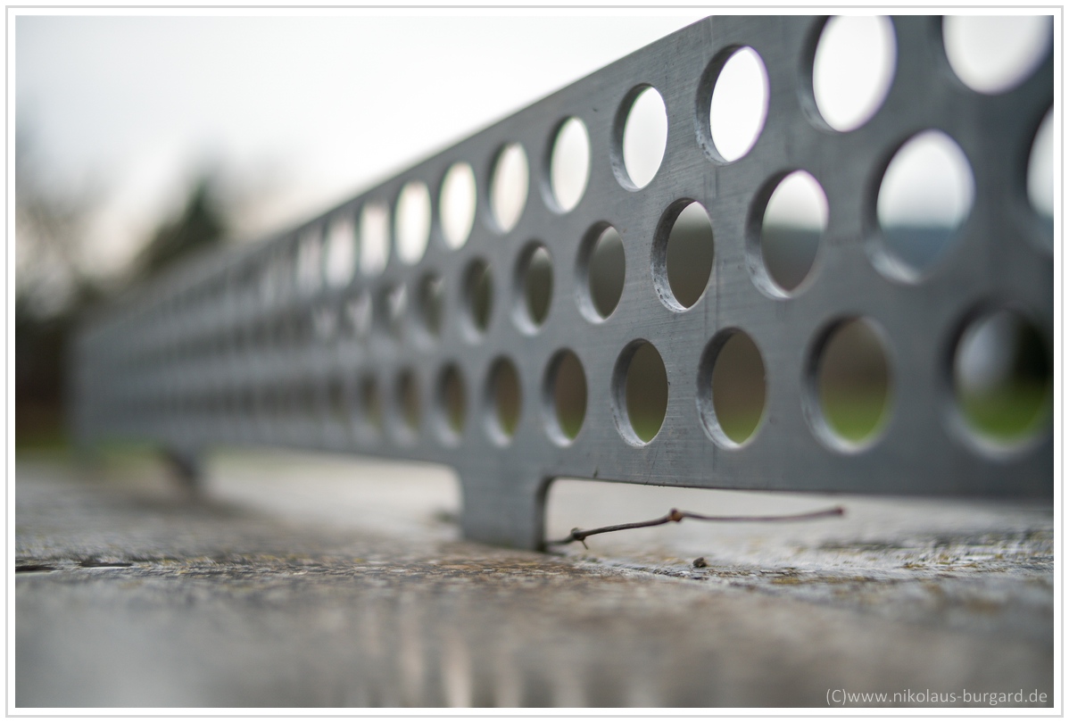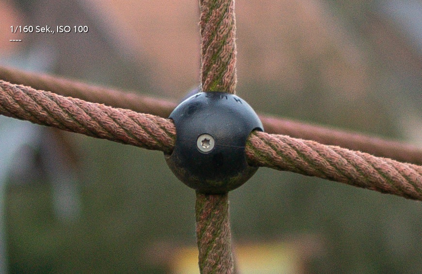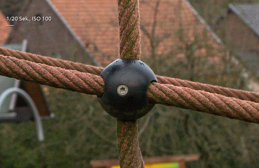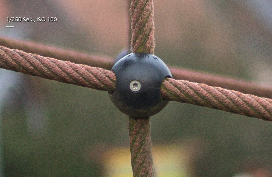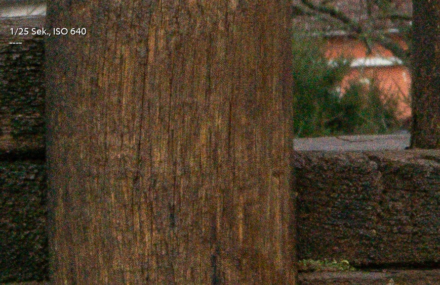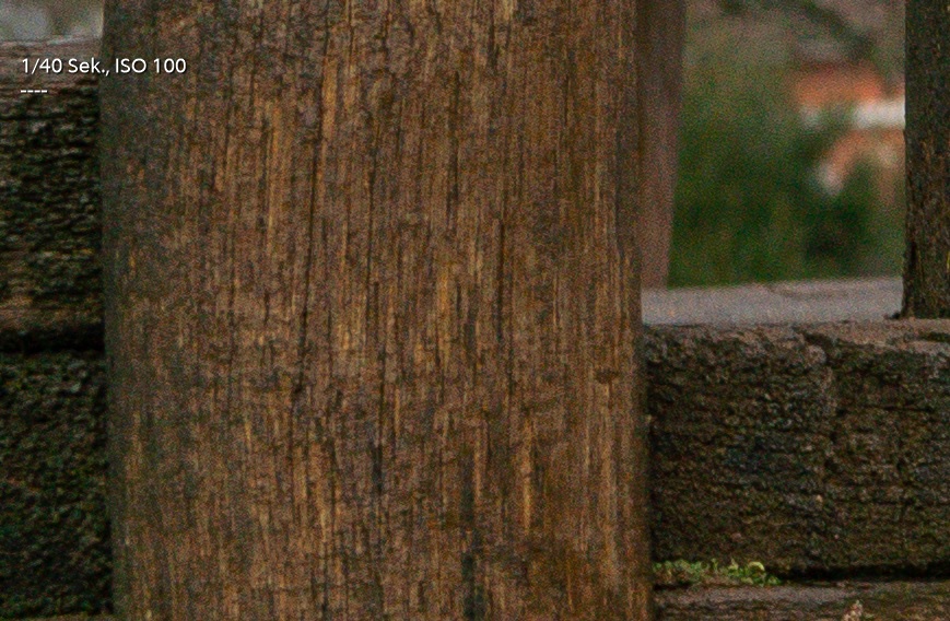 Und zum Abschluß der Schärfereihe Crops aus der linken oberen Bildecke (Achtung: das linke Brett liegt vor der Schärfeebene - hier muss ich beim nächsten Mal besser aufpassen und das gerade noch sichtbare rechte Brett als äußere Bildgrenze nehmen)