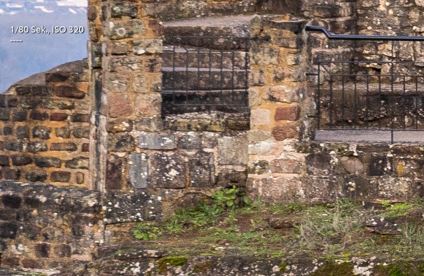 Und der linke Bildrand (bitte beachten: ich stand nicht genau parallel zur Wand, der Bildrand liegt wohl etwas hinter der Schärfeebene der Mitte!)