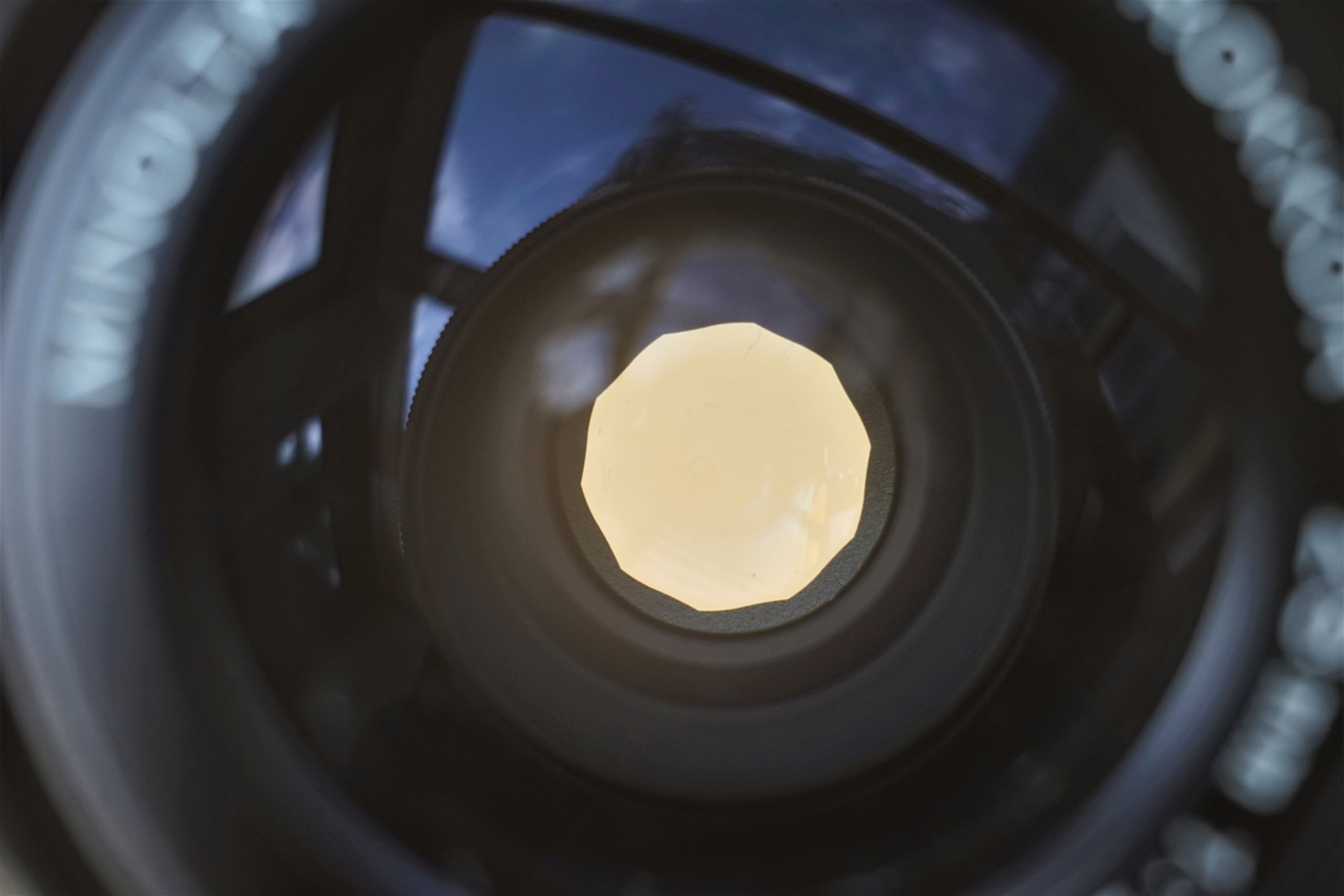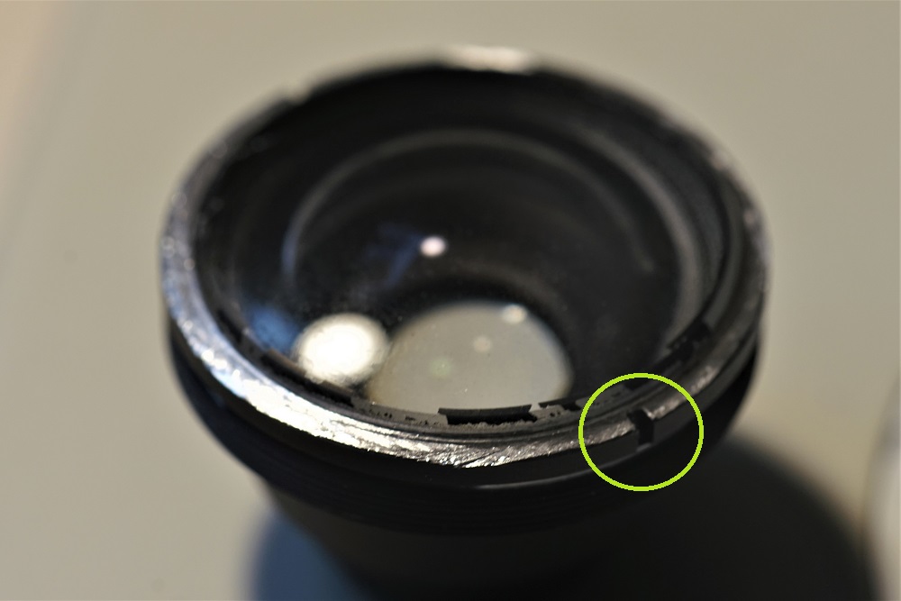 der Blende saß. Hierzu waren nur die beiden Linsenblöcke zu entfernen und glücklicherweise ließ sich der