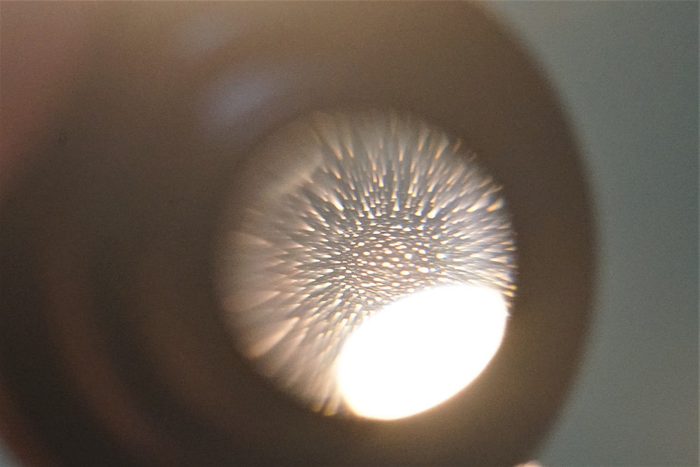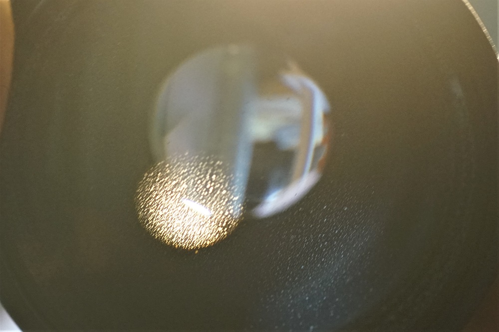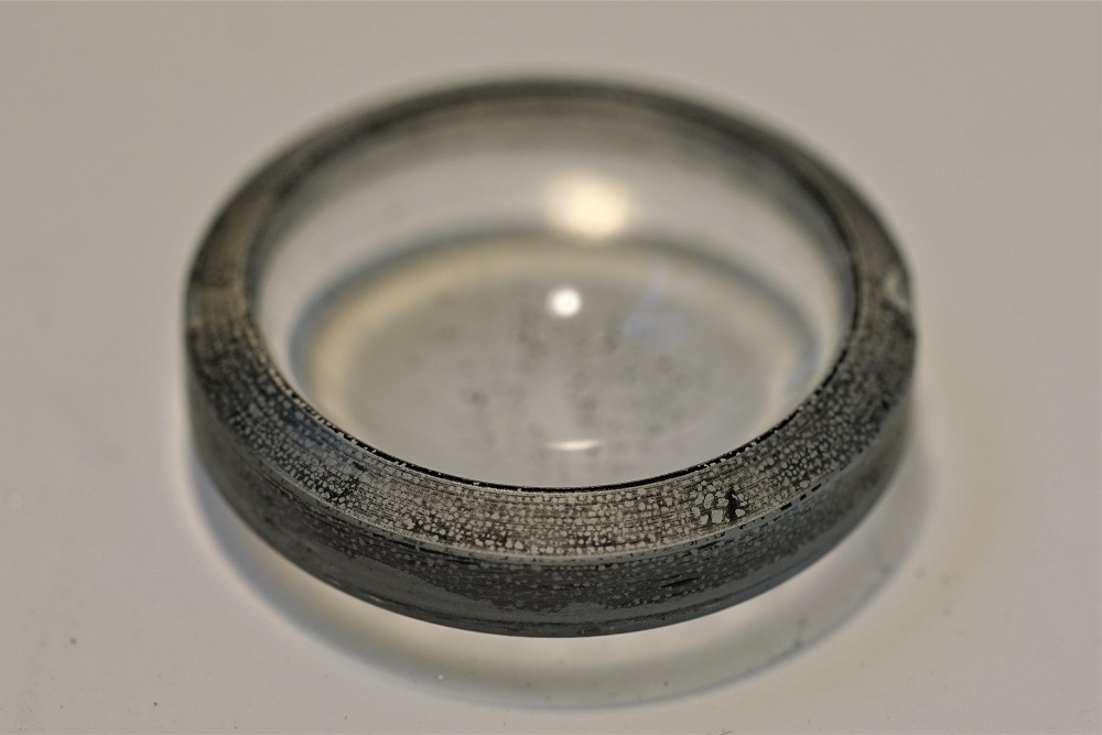 Hier ist die Linse (Schwärzung ist runtergekratzt, aber noch nicht geschliffen):