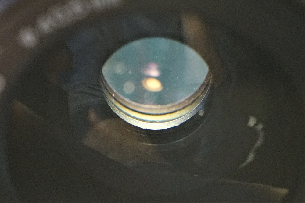 Linse nach erfolgter Politur und Neuvergütung:
