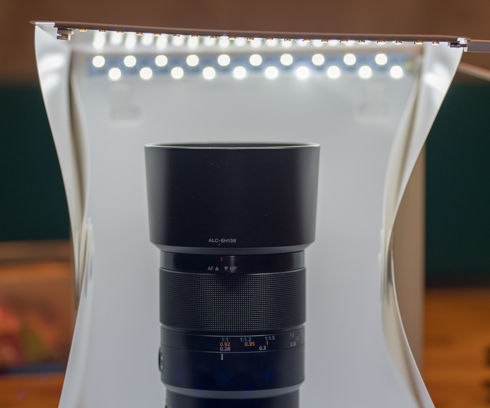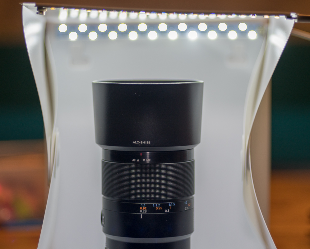 Als erstes habe ich das Objektiv natürlich bei 1:1 getestet unter verschiedenen Blenden. Die A7R2 hatte ich auf einem Stativ und ich habe noch einen manuellen Blitz mit Diffusor benutzt. Der Stift lag in einer Softbox mit LED Lichtern.