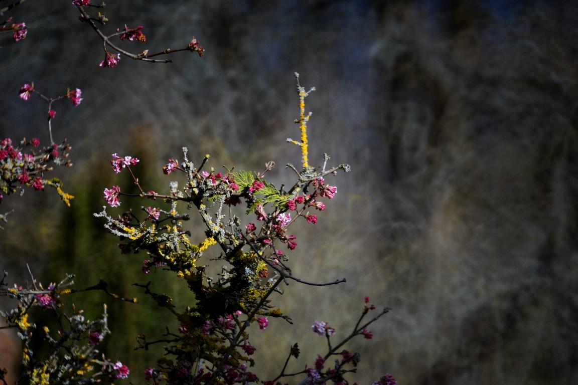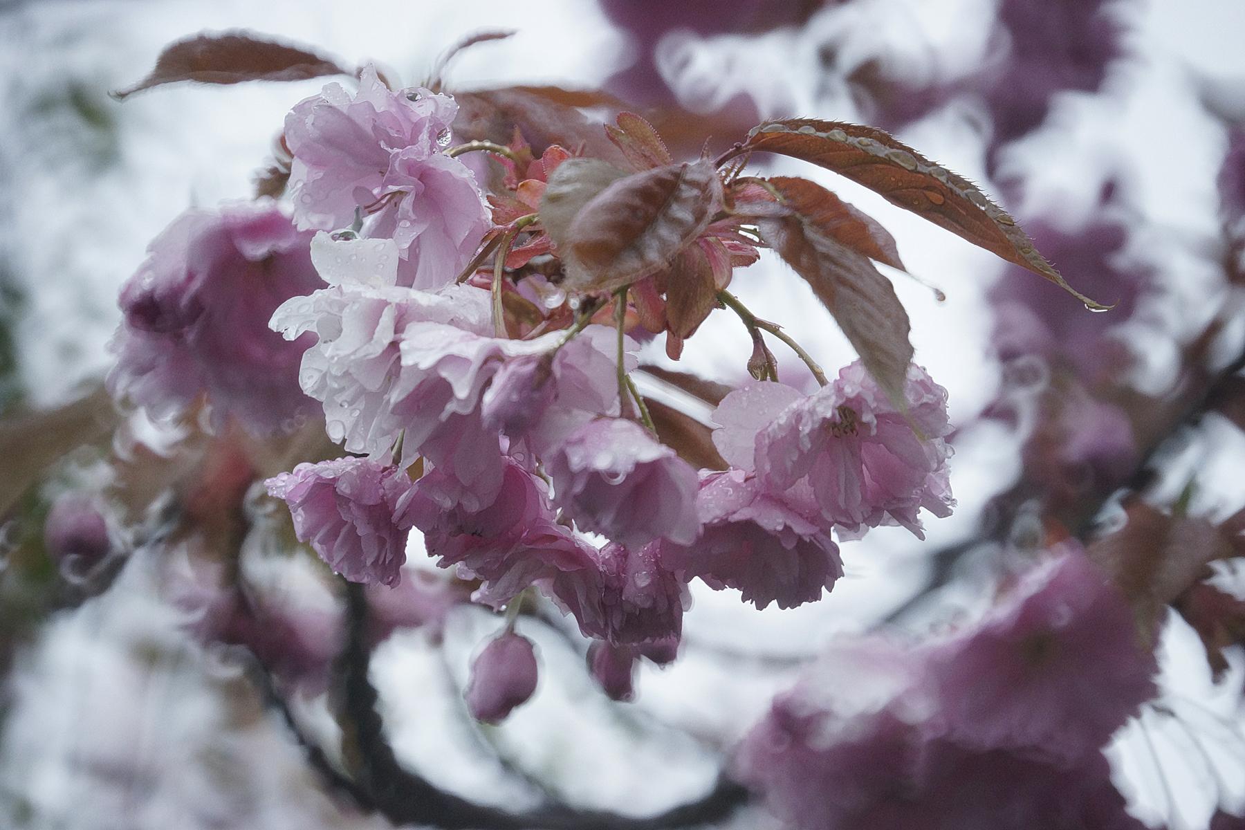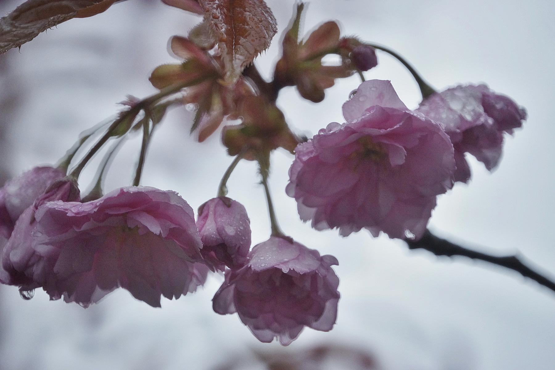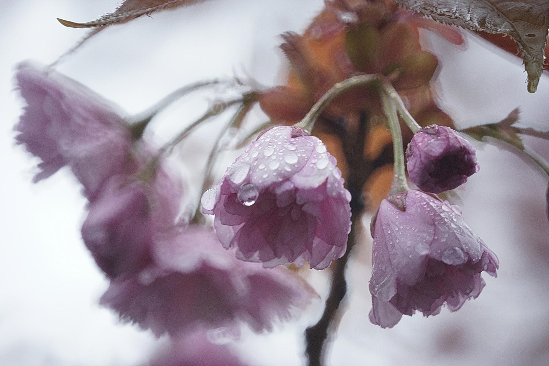 Nach langer Zeit habe ich mal wieder dieses Spiegeltele genommen, es regnet schon den ganzen Tag und daher sind die Blüten der Nelkenkirsche mit Wassertropfen bestückt.
