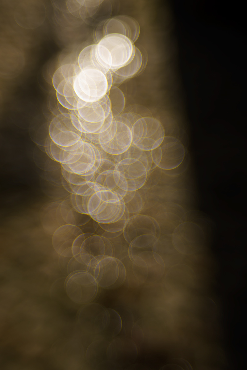 Bei kurzen Entfernungen und offener Blende wird das interessante Bokeh des Objektivs besonders augenfällig : Lichtpunkte werden dann zu “Seifenblasen”, was sicherlich den Resten von sphärischer Abberation zuzuschreiben ist.