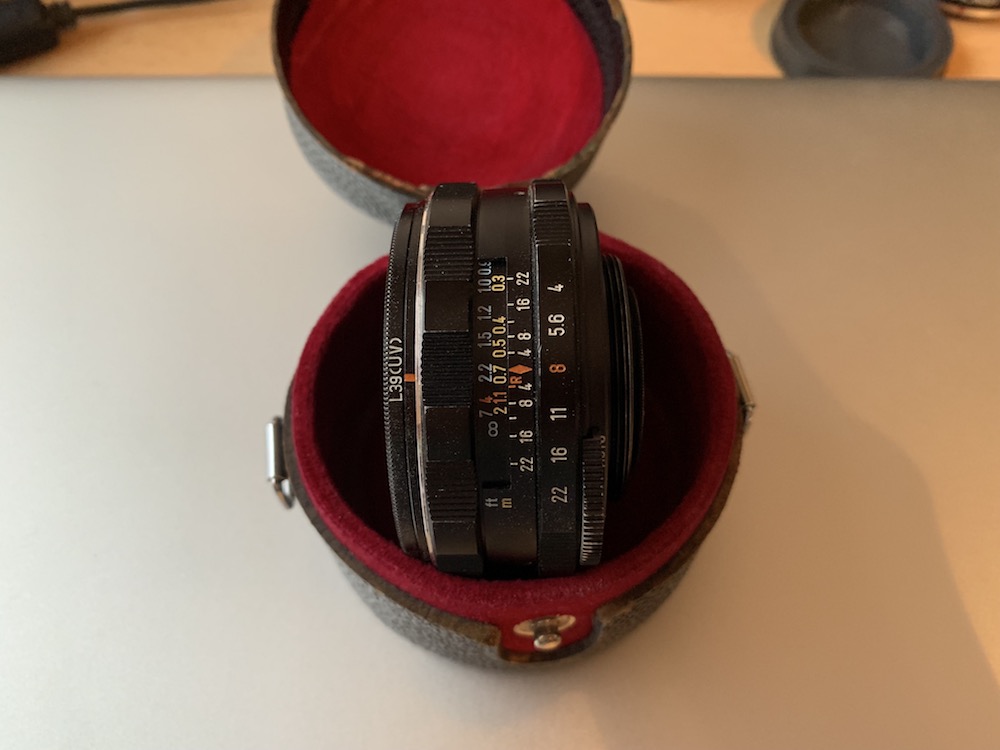 Das Objektiv ist sehr klein und handlich. Durch die gebogene Frontlinse existiert jedoch kein typischer Takumar Frontdeckel. Man sollte also darauf achten ein Exemplar mit passender Box zu erhalten.