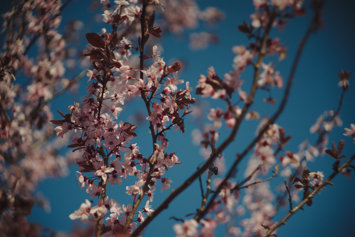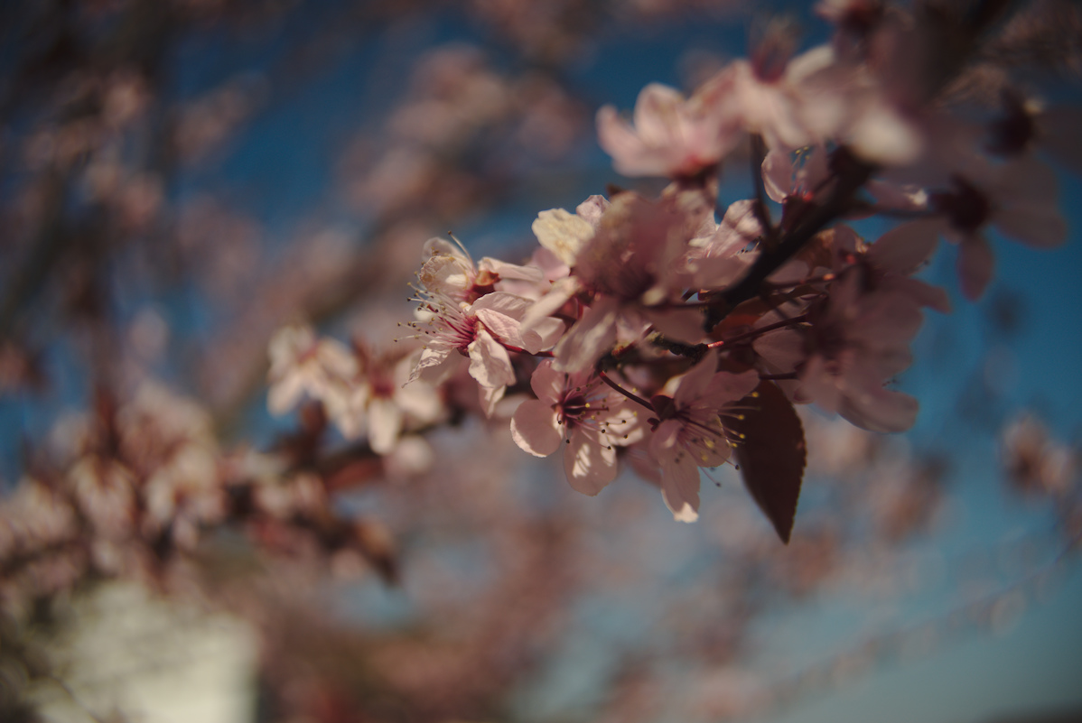 Vor ein paar Tagen gab es schönes Licht am Morgen auf unsere Zierpflaume vor dem Haus. Offenblende bei 28mm und dank Macromodus kurzer Distanz: