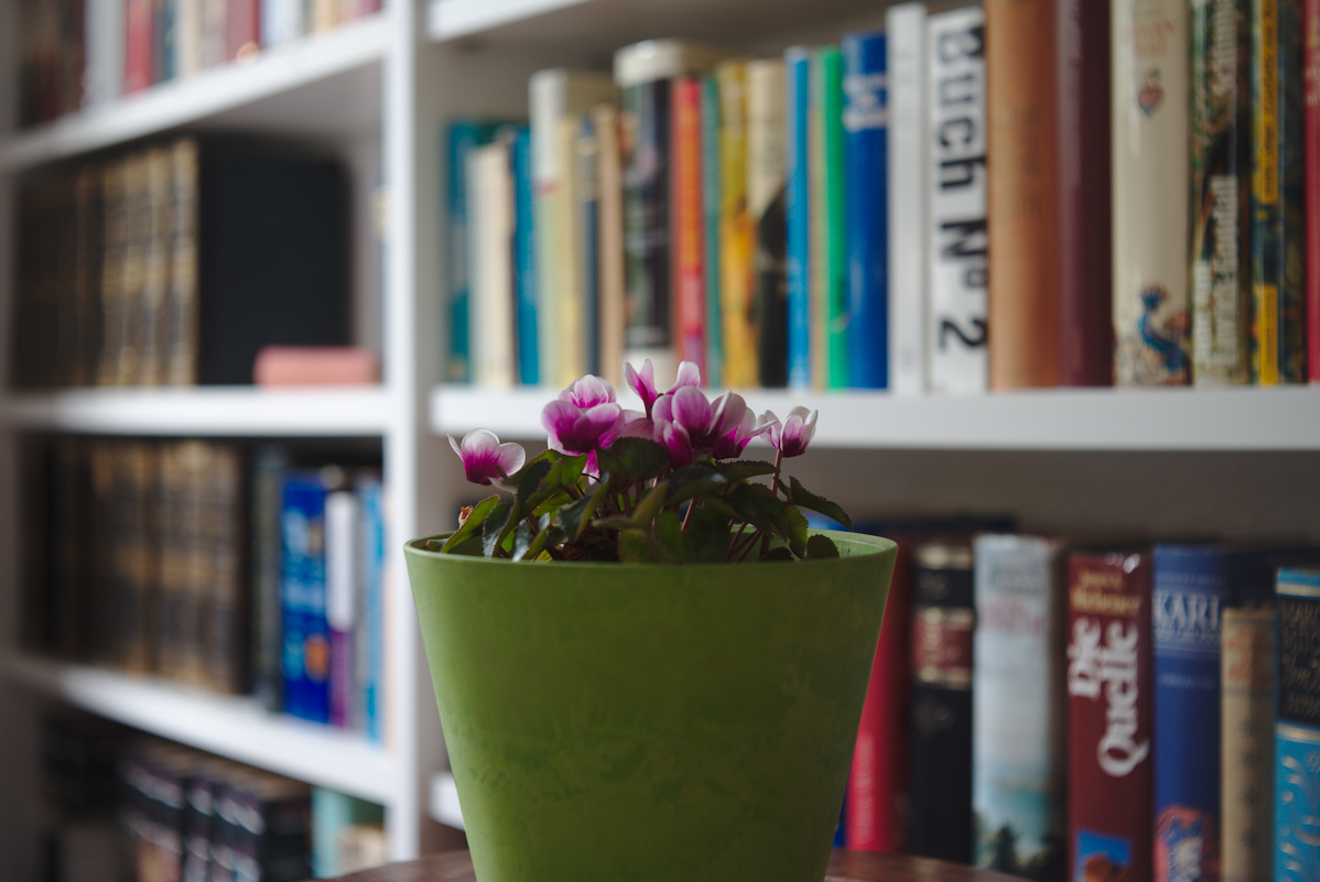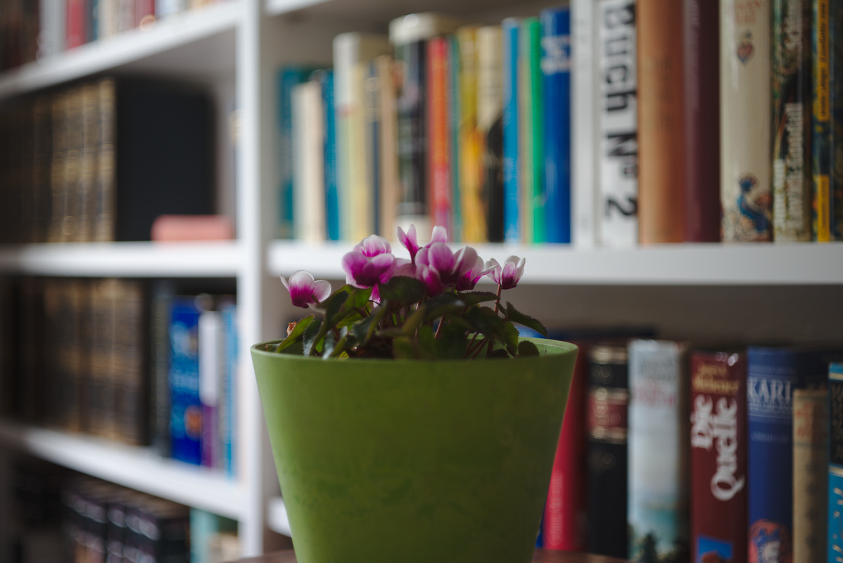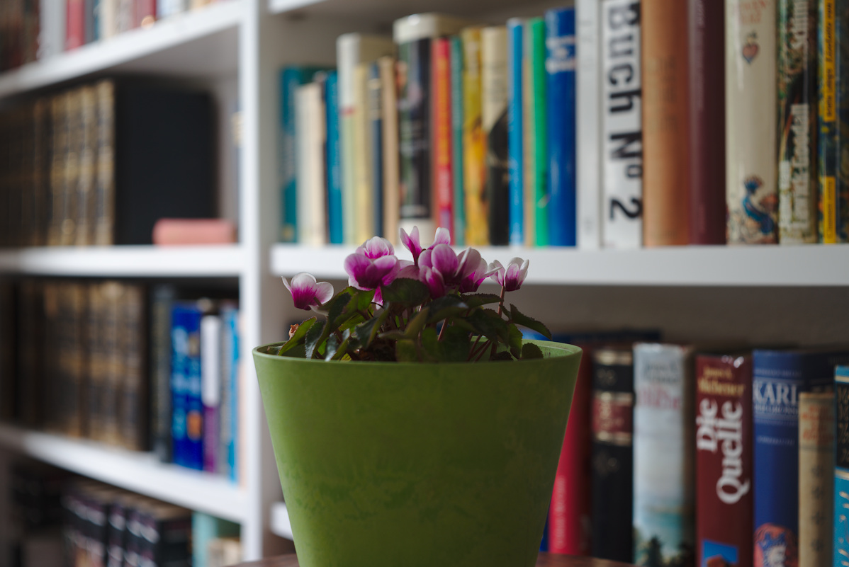 Im Thread zum Color-Lanthar 2,8/50 (https://www.digicamclub.de/showthread.php?t=24325) ist die Frage nach der Performance im Nahbereich bei Einsatz der Voigtländer Focar Linsen entstanden. Ich habe also das Color-Skopar X, das Color-Lanthar und als linsenlosen Vergleich das Edixa-Xenar genommen und Blumen vor Regal abgelichtet. Sony Alpha 7 II bei ISO 100 mit Stativ und aus Raw im Darktable mit Defaults entwickelt. Es gibt zuerst die Übersichten bei f/2,8 - f/4 - f/8 und dann 100% Crops. Focus auf das rechte Blatt der Blüte ganz links. Die Voigtländer Objektive haben das Focar A mit 1 Dioptrie vorgeschraubt bekommen und der Abstand ist ca. 0.6m, näher geht es mit dem Focar A nicht.