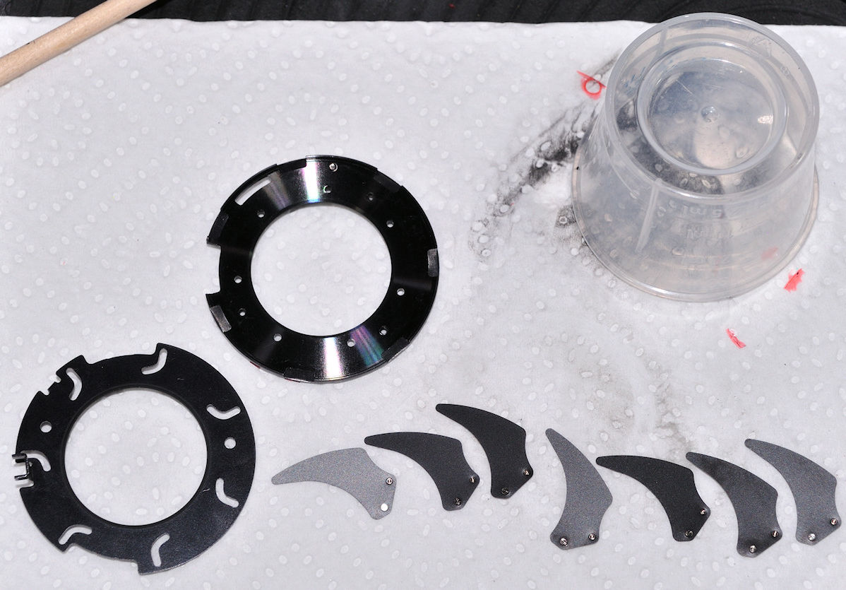 das Zerlegen, Reinigen, zusammenbauen und wieder einbauen der Irisblende ist bei manuellen Objektiven ähnlich.