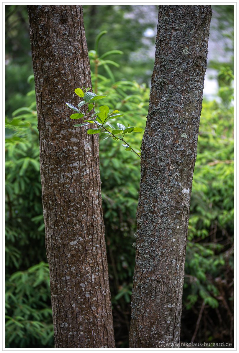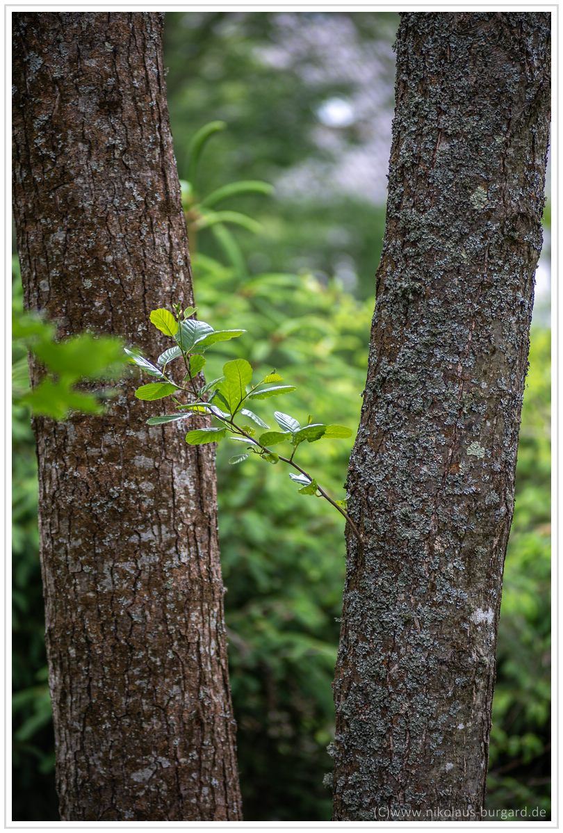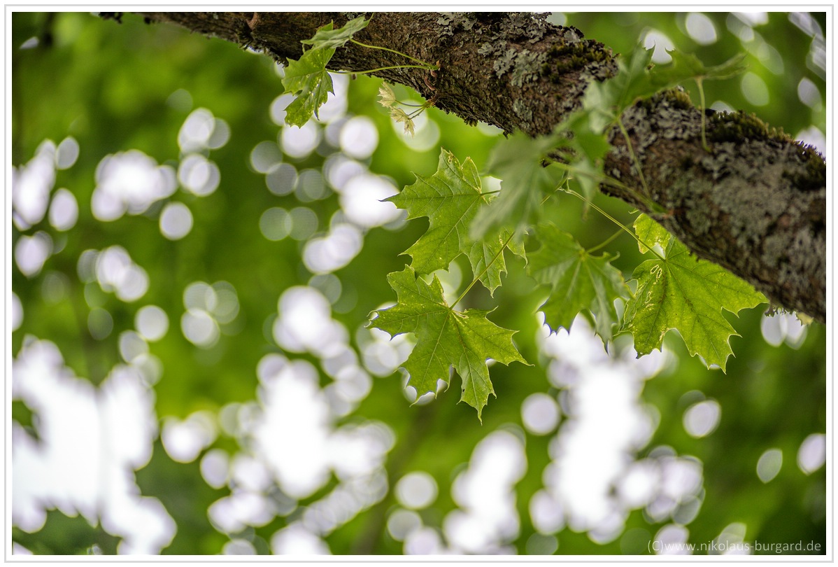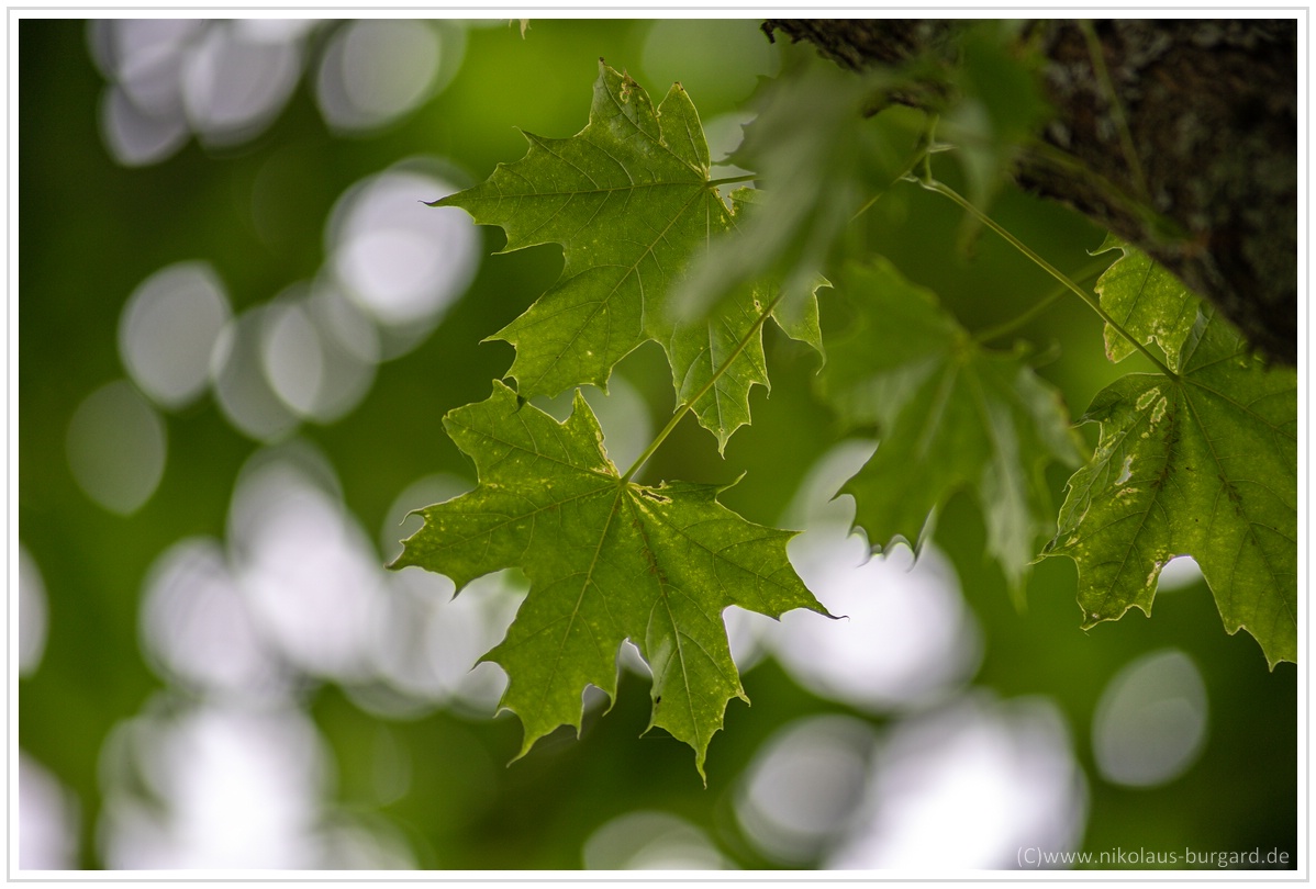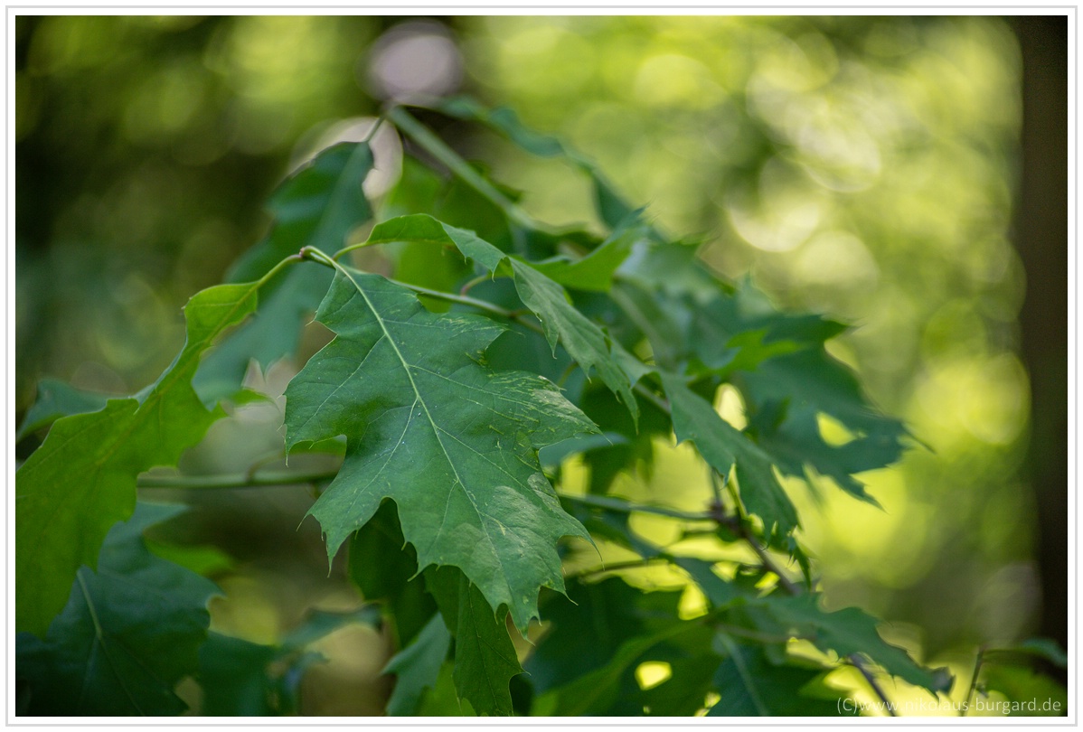 #21 + #22 Bildpaar mit Fokus auf den Blättern im Vordergrund und darunter dem Fokus auf den Bäumen im Hintergrund