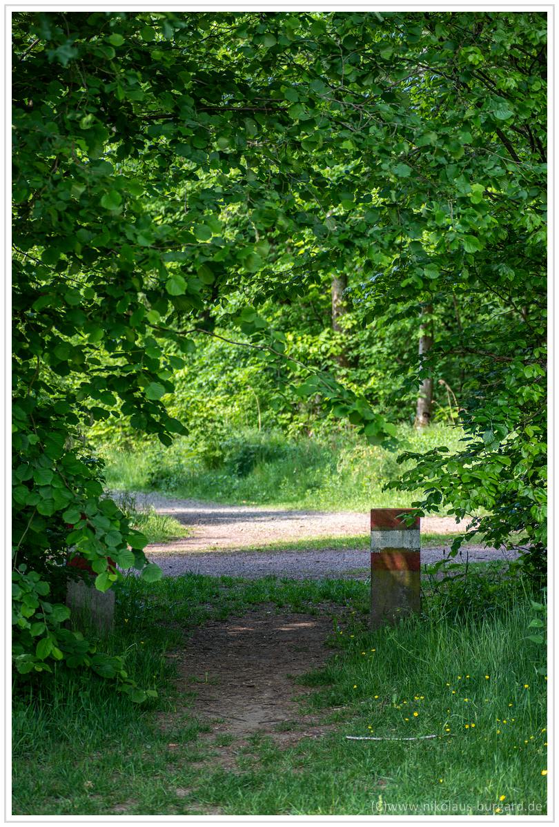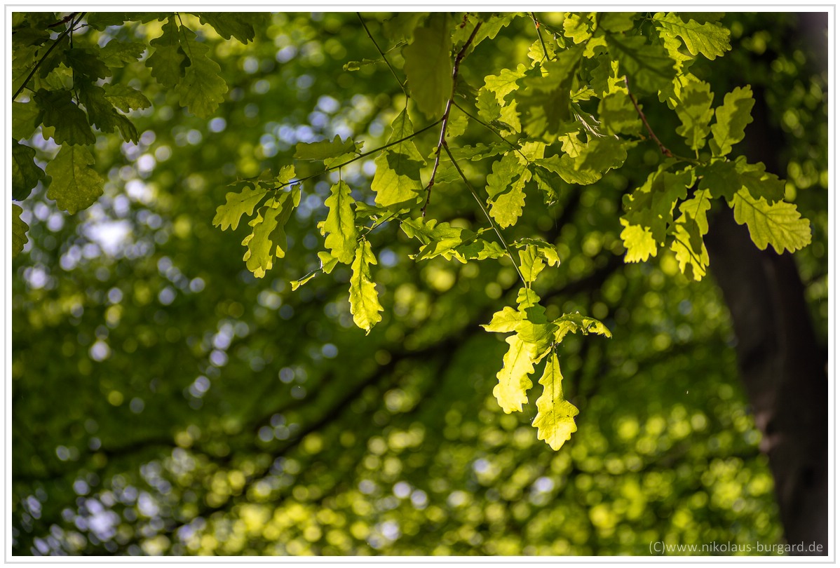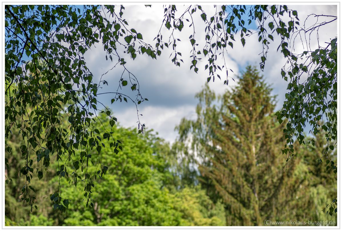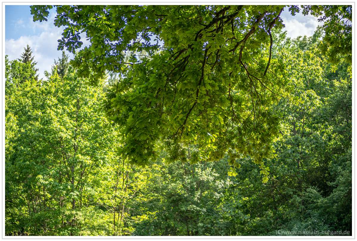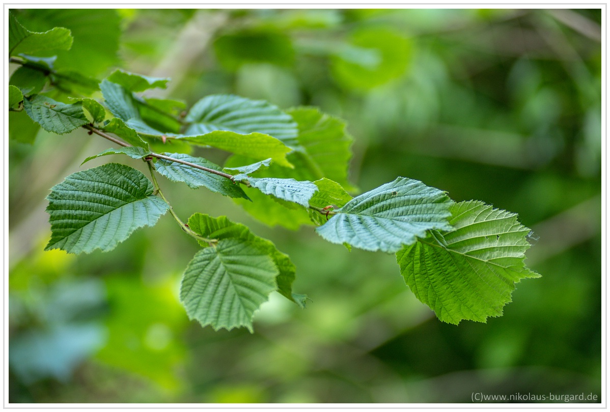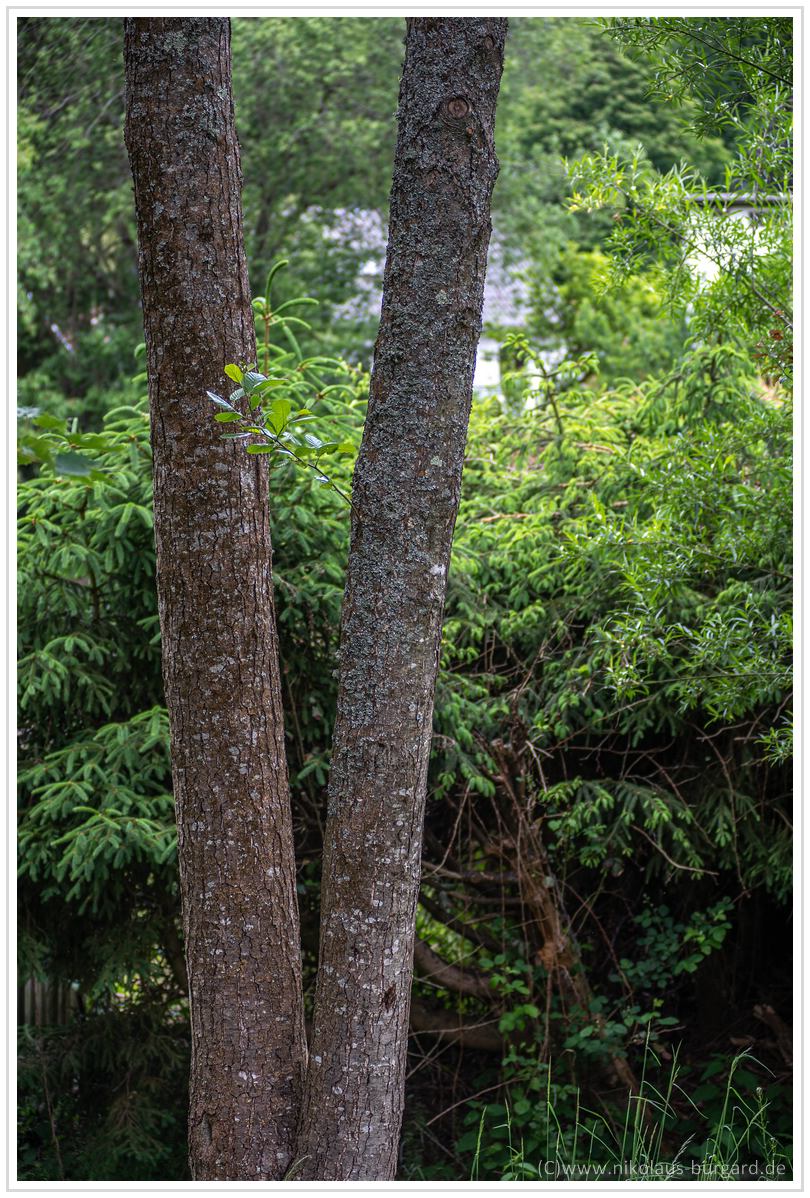 #21 + #22 Bildpaar mit Fokus auf den Blättern im Vordergrund und darunter dem Fokus auf den Bäumen im Hintergrund