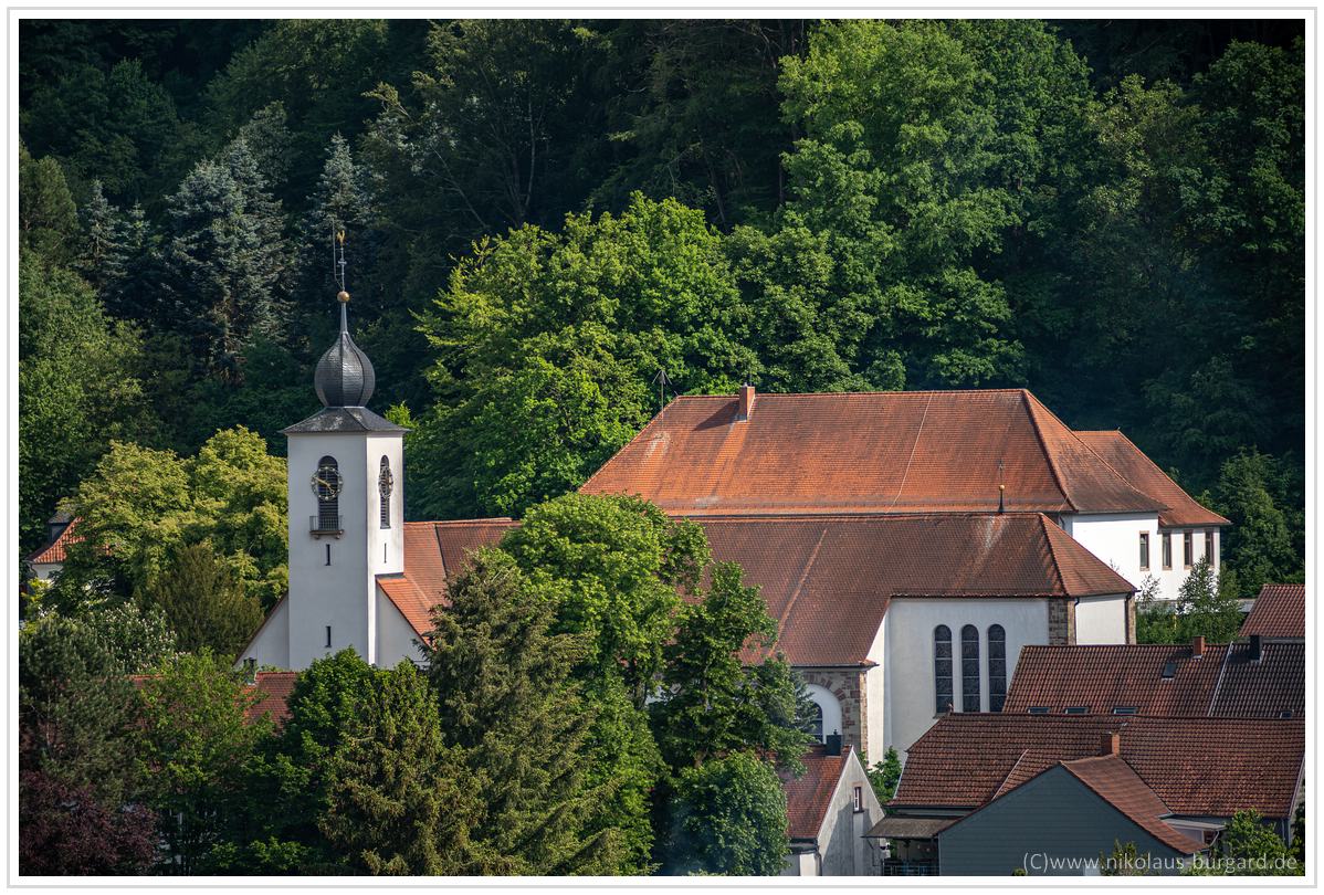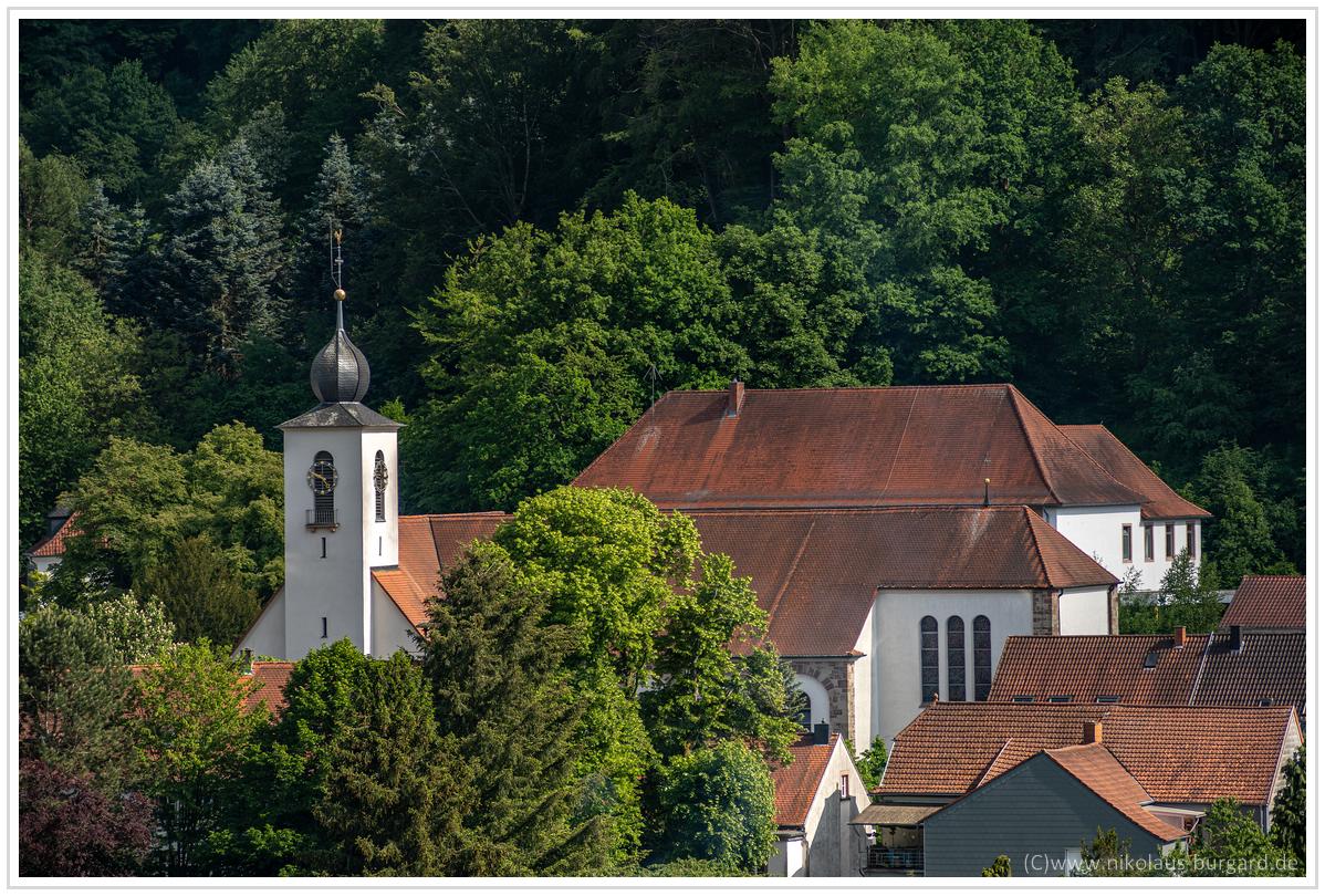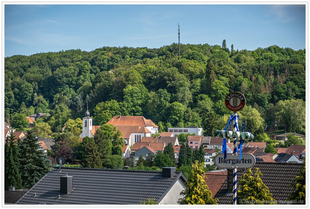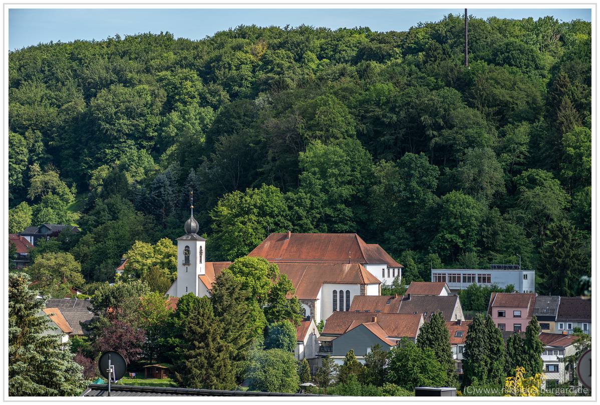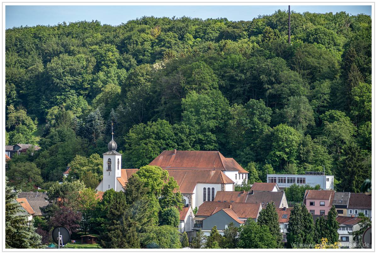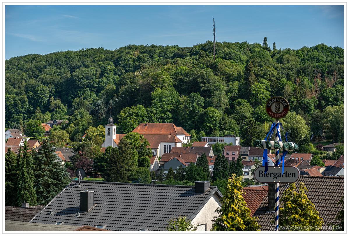 Ein Blick auf den Kirchturm in meinem Wohnort vom Berg außerhalb.
