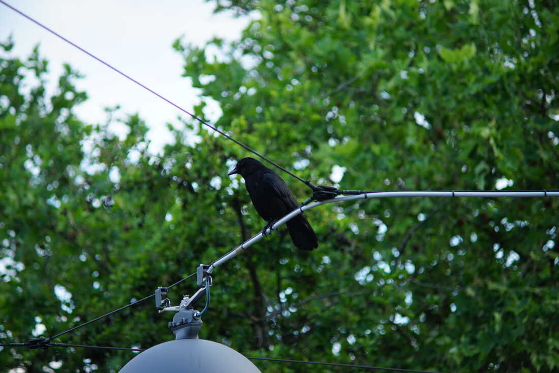Krähen mag ich gerne, deshalb ist auch auf dem nächsten Bild eine drauf, zeigen möchte aber damit die - bei einem Zoom diesen Alters (und von Minolta) nicht überraschenden - heftigen violetten Farbsäume an den Kontrastkanten. Auch in den Highlights in der Unschärfe ist es bunter als es sein sollte.