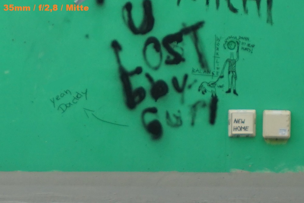 Crops aus der Bildmitte bei 35mm, Blendenwerte 2,8 // 4 // 8: