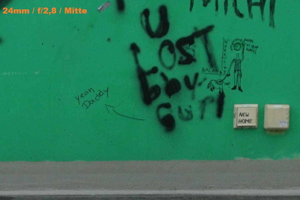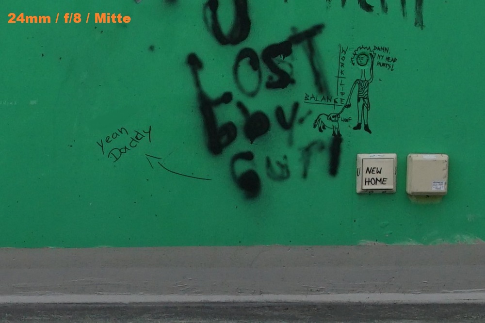 Crops aus der Bildmitte bei 24mm, Blendenwerte 2,8 // 4 // 8: