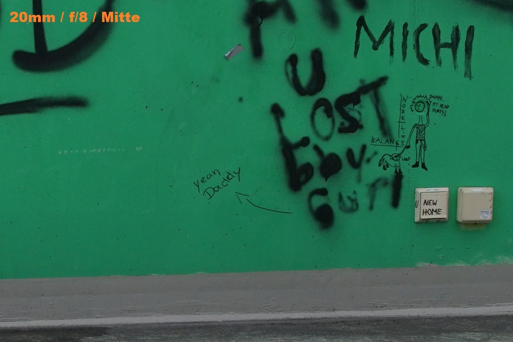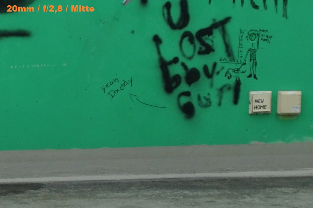 Crops aus der Bildmitte bei 20mm, Blendenwerte 2,8 // 4 // 8: