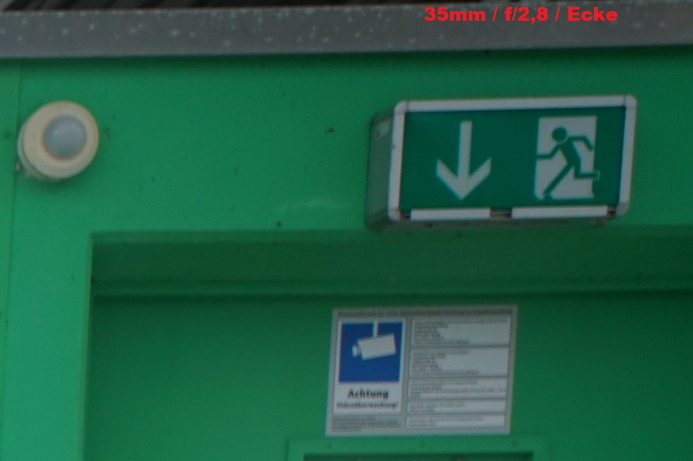 Crops der Bildecke bei 35mm, Blendenwerte 2,8 // 4 // 8: