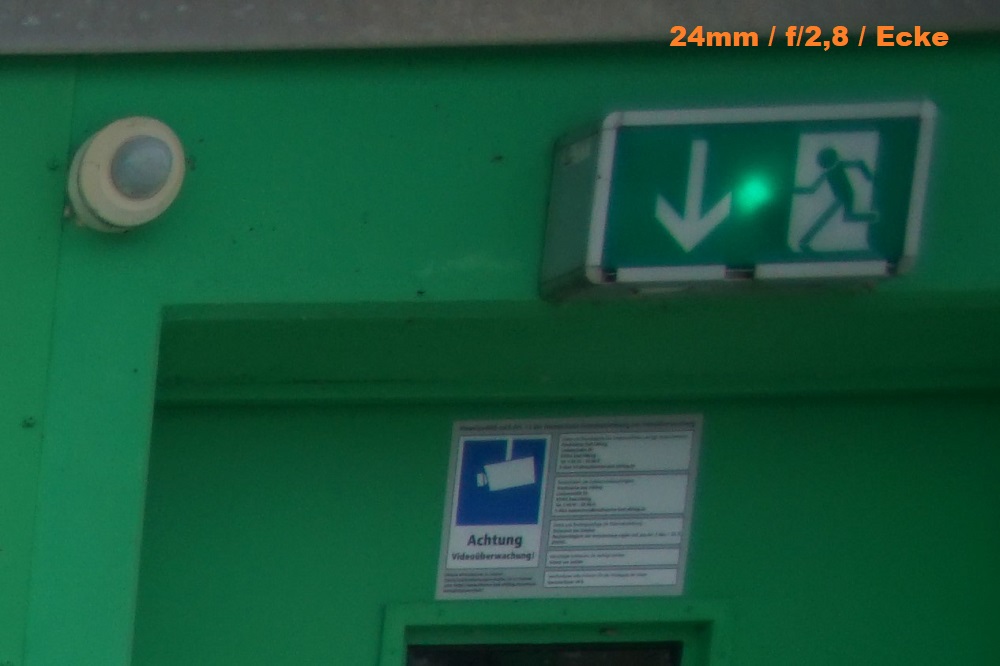Crops der Bildecke bei 24mm, Blendenwerte 2,8 // 4 // 8: