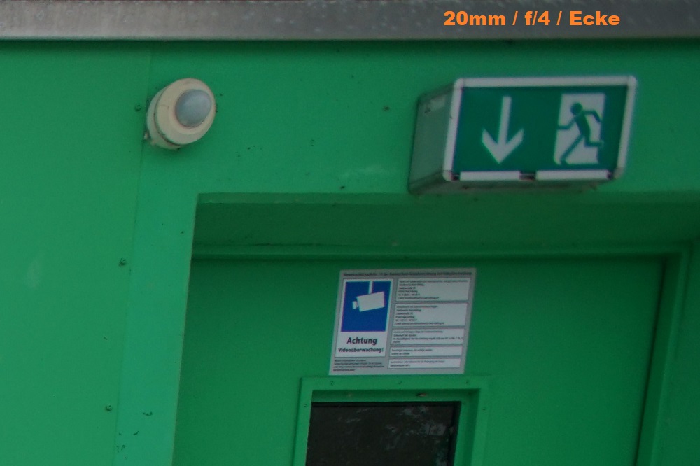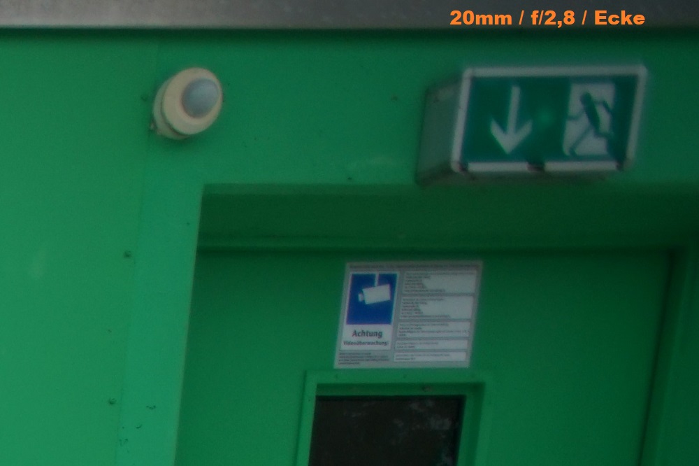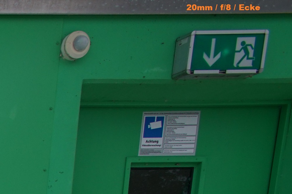 Crops der Bildecke bei 20mm, Blendenwerte 2,8 // 4 // 8: