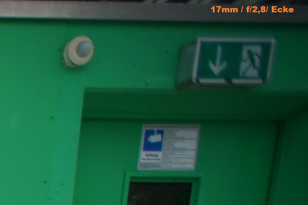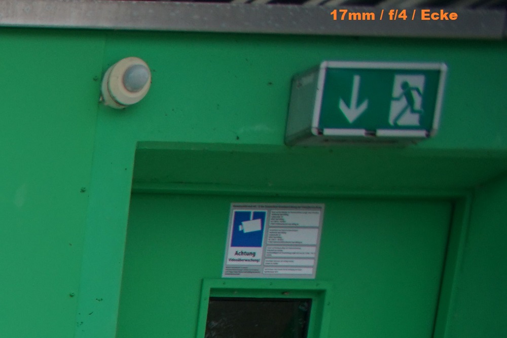 Crops der Bildecke bei 17mm, Blendenwerte 2,8 // 4 // 8: