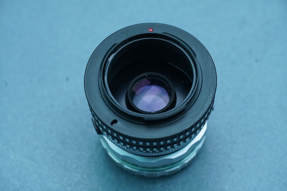M42 Anschluß habe ich dann einen M42-auf-NEX Adapter (ultraflach) draufgeschraubt und ebenfalls mit