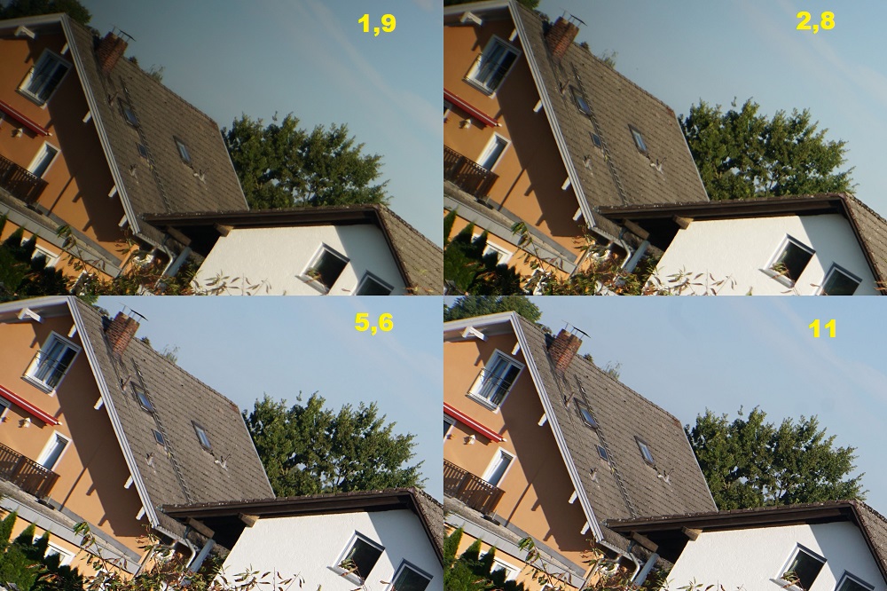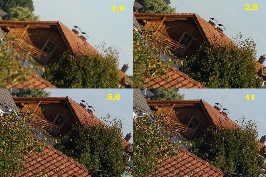 Die Ecken sind schon bei Offenblende gut und werden beim Abblenden noch besser. Störend ist die