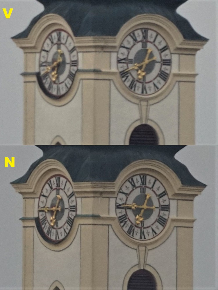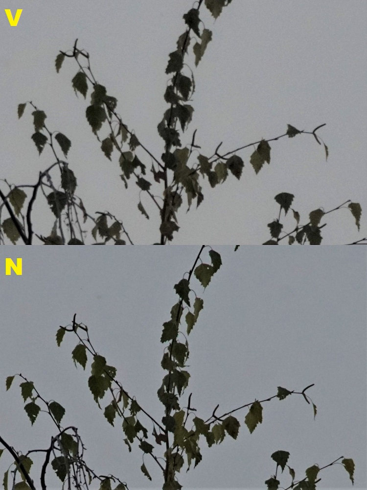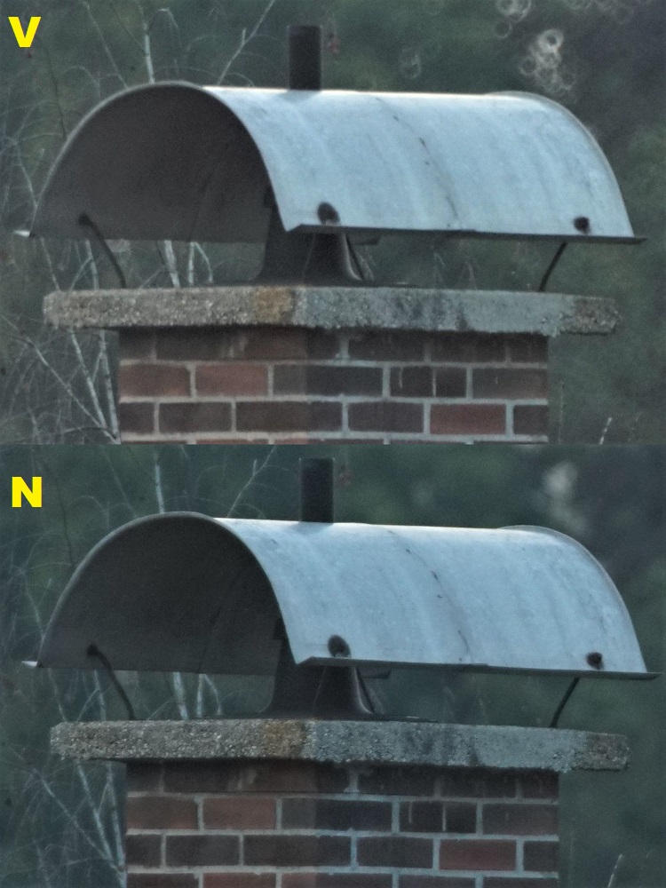 bei f/8 fotografiert und die crops untereinandergelegt (oben: Vivitar, unten: Nikon).
