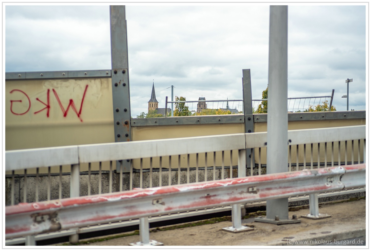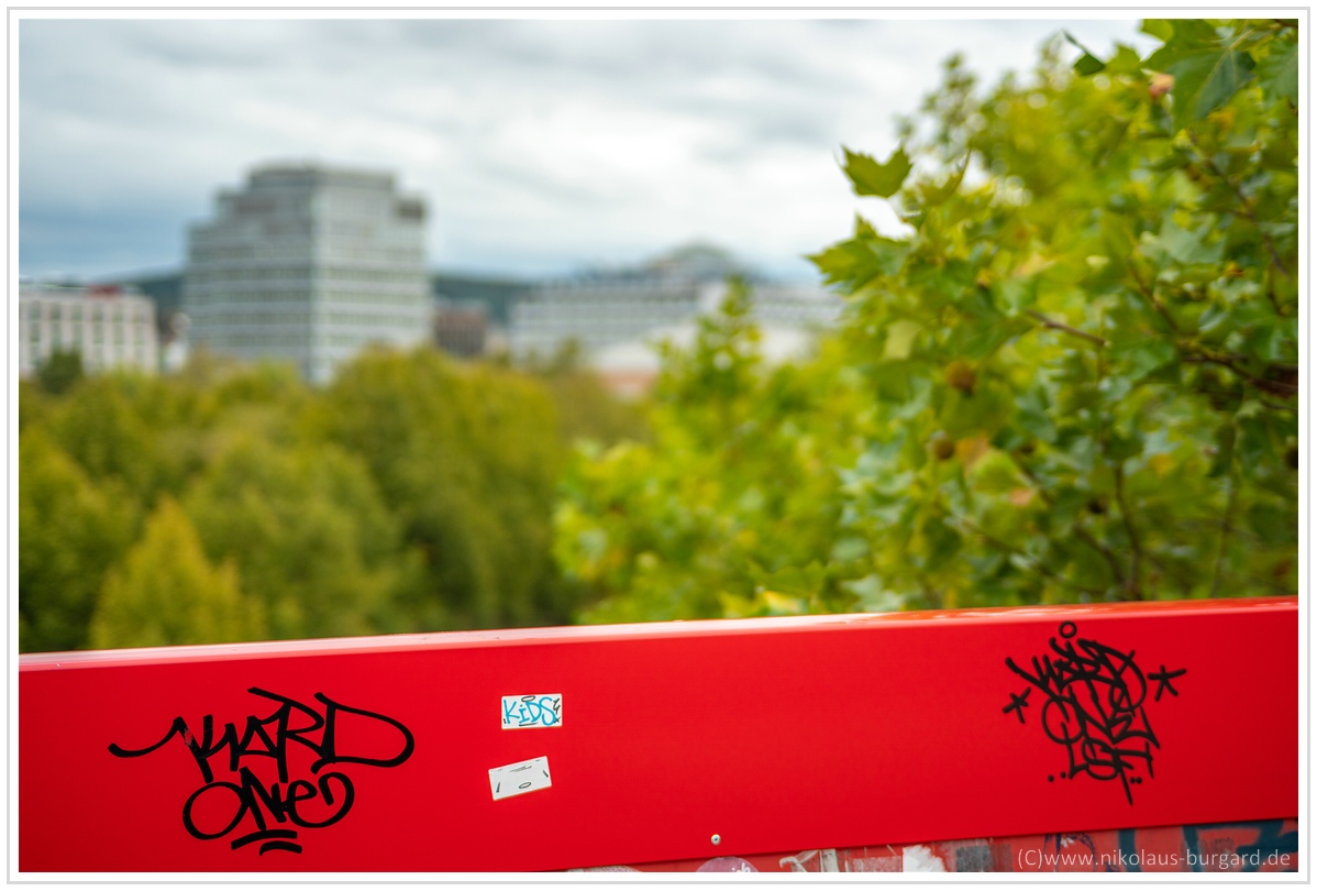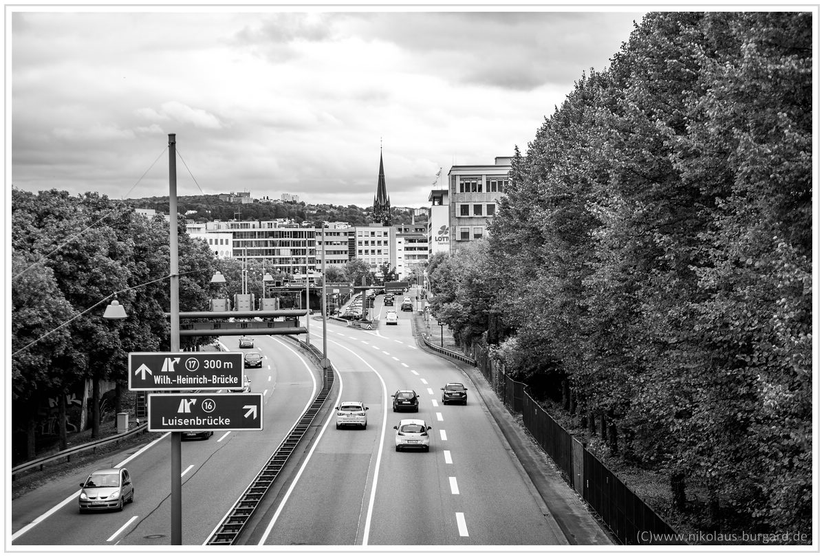 #18 f1.8 Blick auf den oftmals größten Nebenfluß der Saar mit 13 Buchstaben, die Stadtautobahn :dancing: - Fokus auf dem naheliegenden Schild