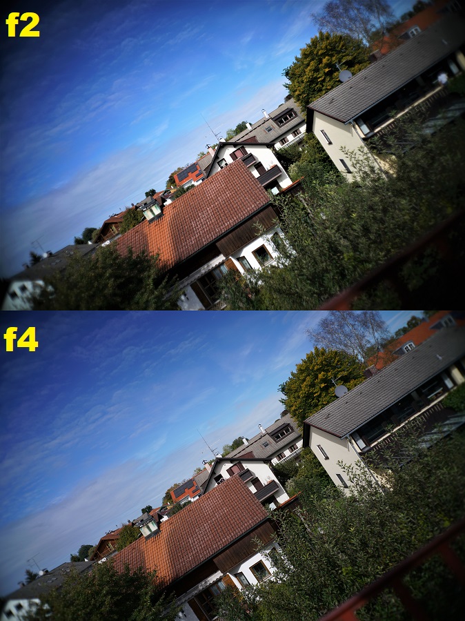 bedingt durch die Tiefenschärfe weiter scharf bleibt, um zu sehen, ob sich das auf die Ecken
