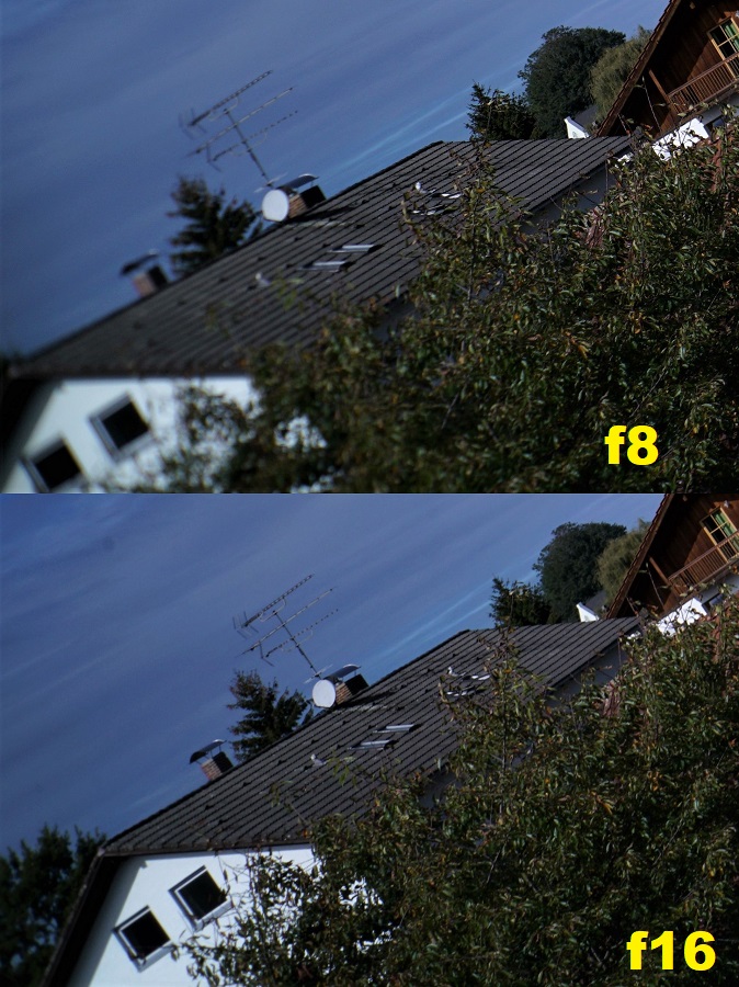 Nun noch eine Demonstration der ausgeprägten Unenpfindlichkeit gegenüber Flares (beide bei f/16):