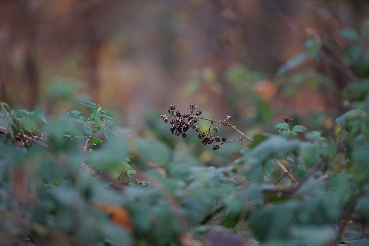 In der Folge nun ein paar erste Aufnahmen, enstanden bei einem Waldspaziergang in den letzten Novembertagen. Alle Bilder, wenn nicht anders vermerkt, bei Offenblende mit AF und ohne Stativ. Mir ging dabei es in erster Linie um Eindrücke zur Nutzbarbarkeit ohne Stativ, zum Freistellvermögen und zum Bokeh. Daher sind auch keine Makroaufnahmen dabei, welche die Fähigkeiten der Linse in dieser Domäne zeigen könnten.