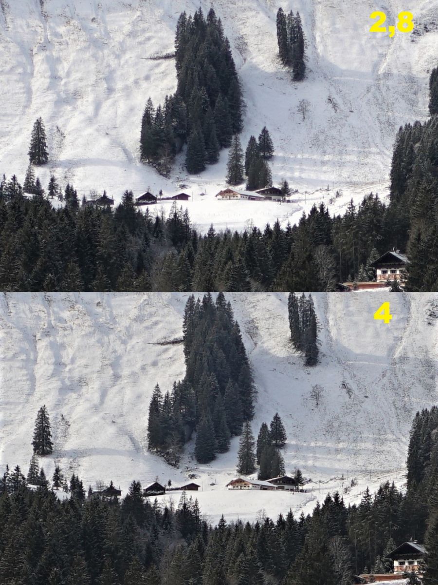 Die Blende 2,8 ist bereits mehr als brauchbar, ab Blende 4 wird es sehr gut und bei Blende 5,6