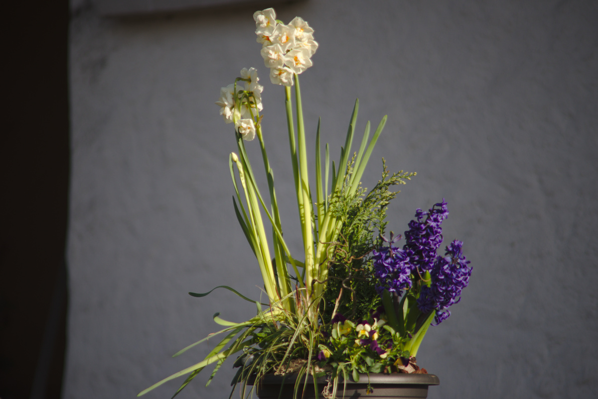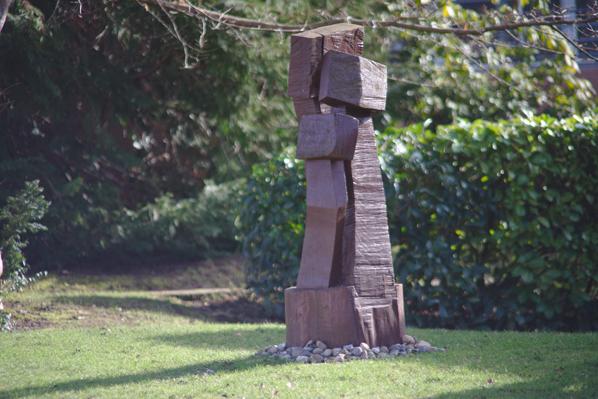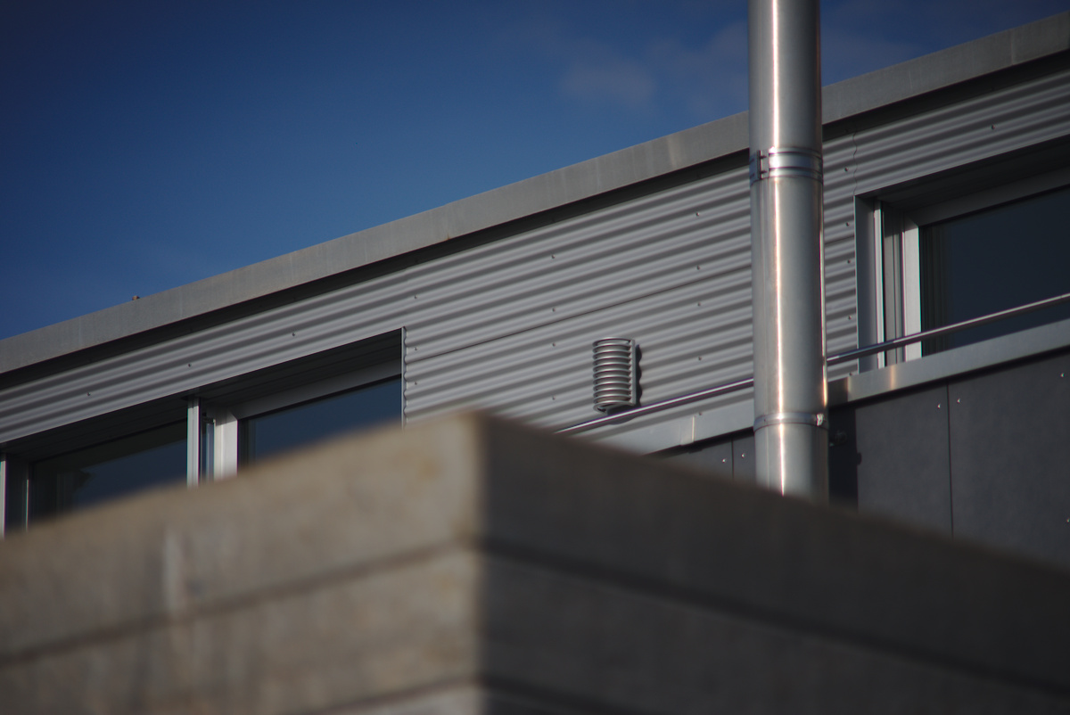 #5 Kunst im Vorgarten bei Offenblende und Gegenlicht. Der Kontrast ist im Keller und die Farbsäume an den Highlights machen das Bokeh eher unruhig: