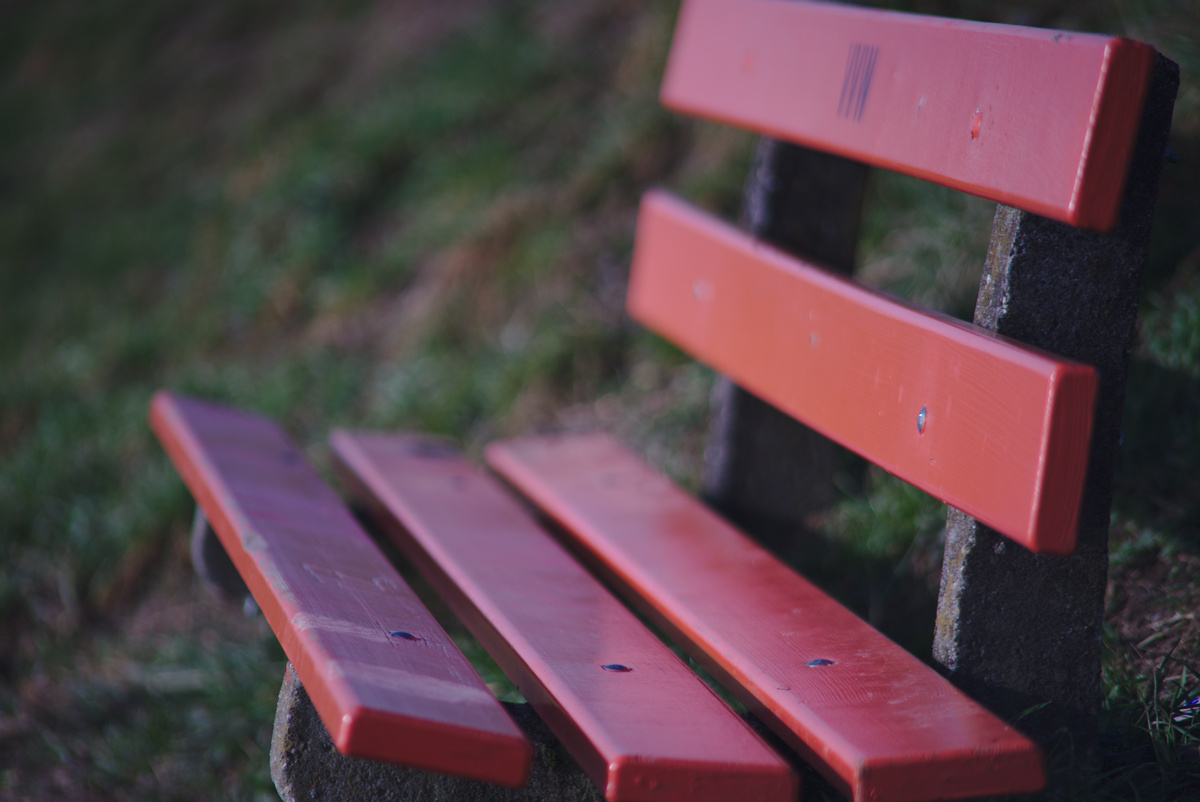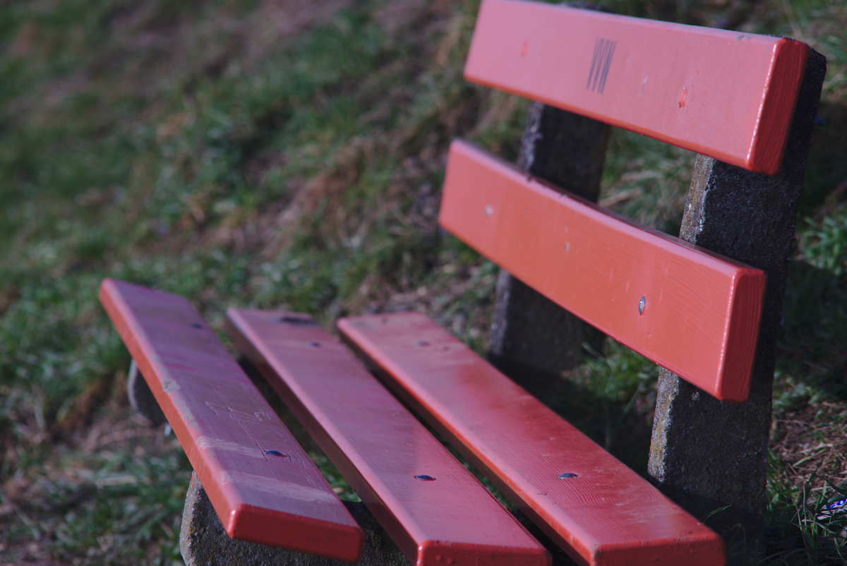 #14 Schäreverlauf an einer Bank. Fokus auf den unteren Niet an der Rückbank. f/3.3: