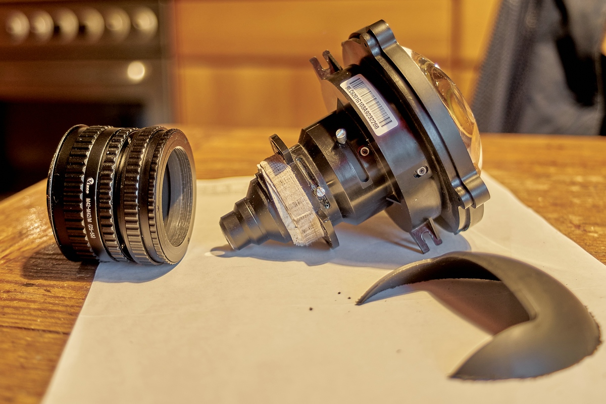 adaptiert hab ich das Objekt mittels eines aufgeklebten Pappstreifen und "reinschrauben" in M42 Helicoid...der Helicoid hängt etwas deshalb die Abschattung in den oberen Bildecken etwas grösser...der ganze Sensor der Sony A7II wird nicht ausgeleuchtet.