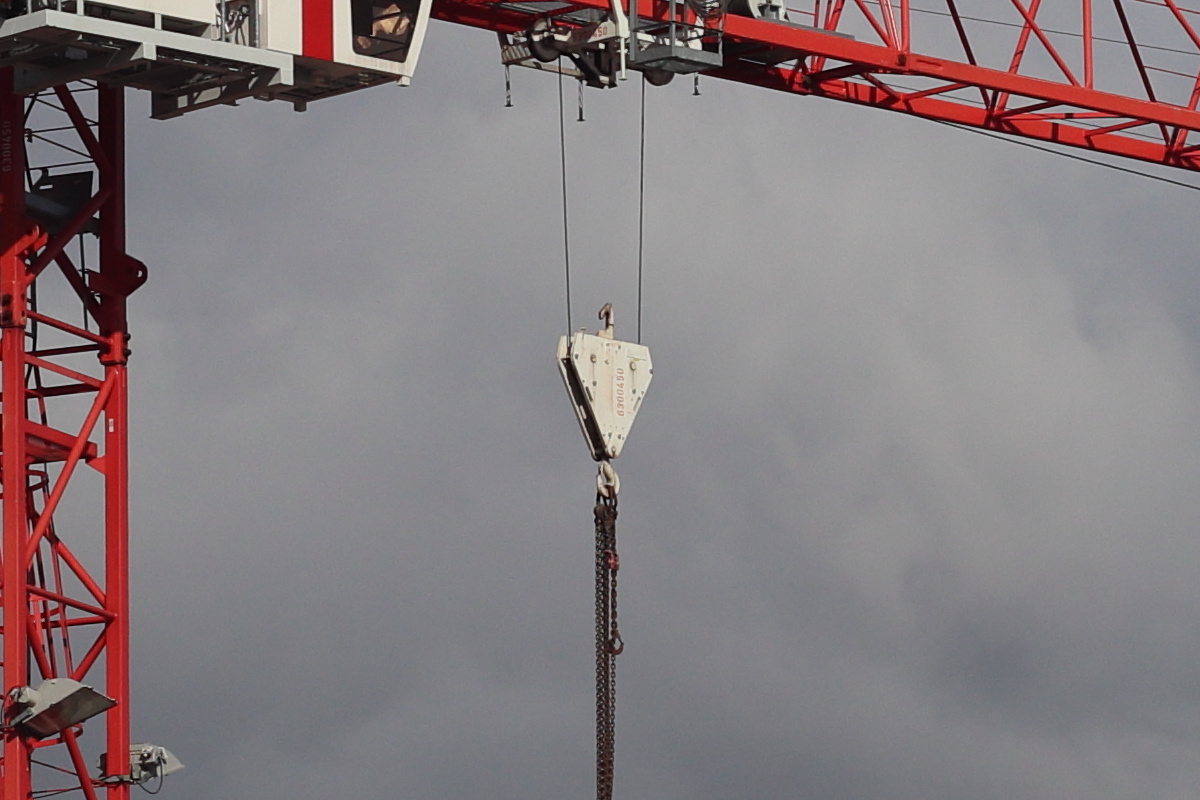 Dabei löst die Linse recht gut auf. Ein Bild von meinem Lieblingskran (weil rot und gutaussehend auf dem blauen Himmel :)), auf 5,6 abgeblendet. Man sieht hier die Vignettierung sehr gut.