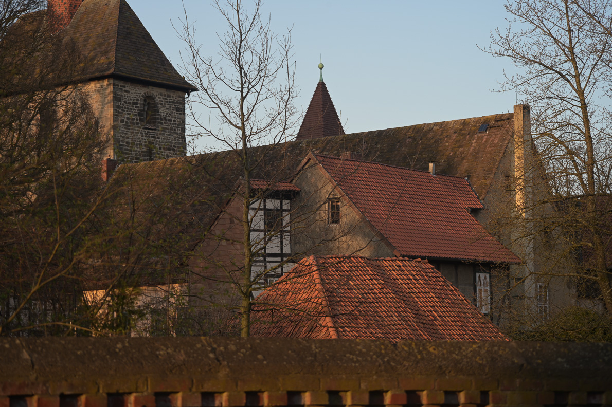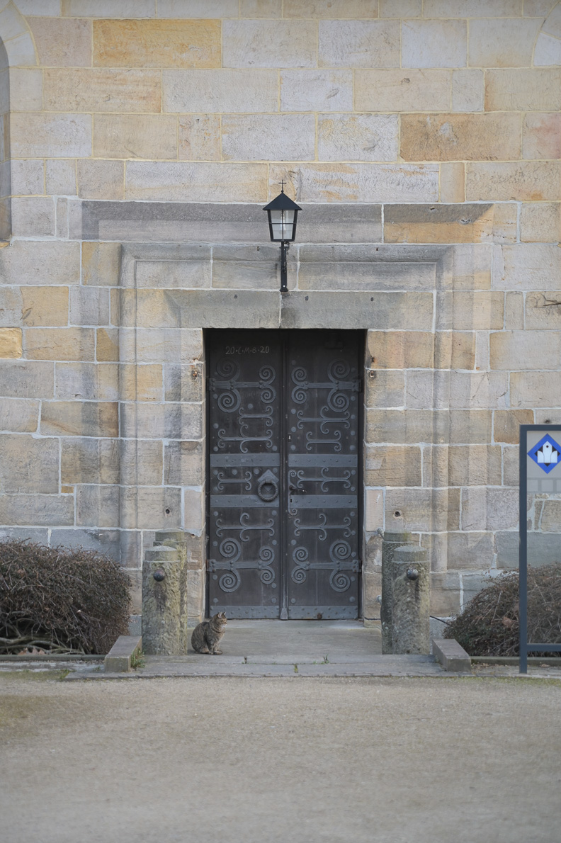 Alte Gebäude sind zwar manchmal krumm und schief, aber die konkav gerundete Pforte geht auf das Objektiv. Die Verzeichnung ist klar sichtbar.