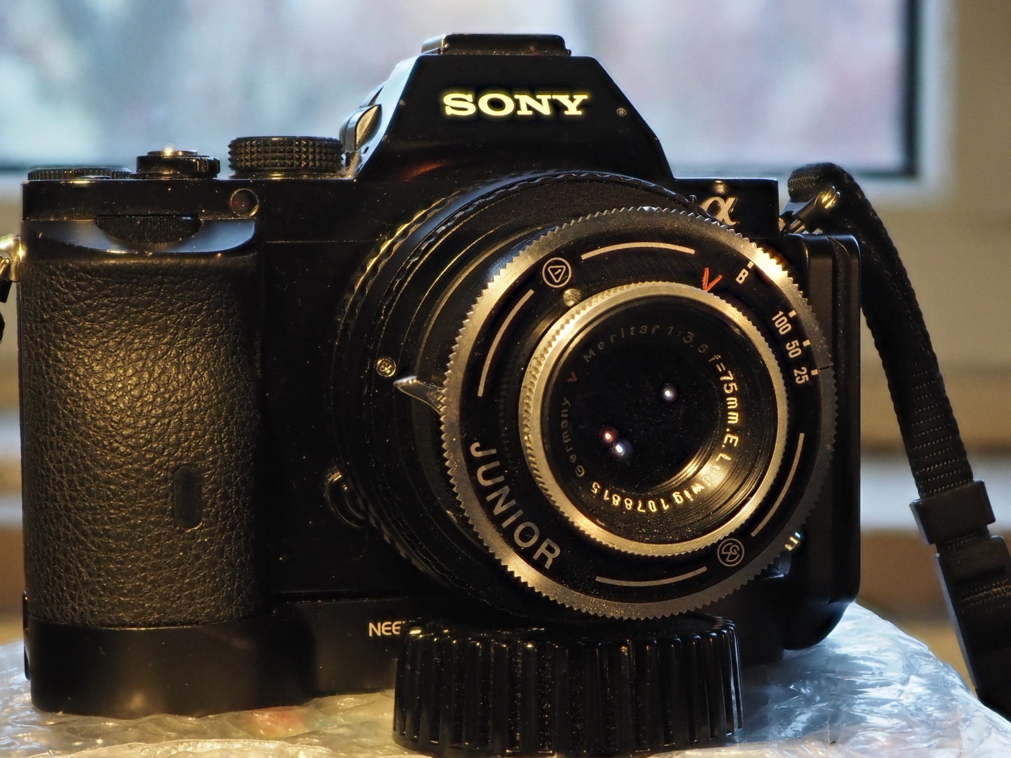 Bekommen habe ich dann eine Kamera, bei der Gehäuseauslöser abgebaut war, man konnte nur noch über einen kleinen Hebel am Objektiv auslösen, zudem war der Balegen undicht.