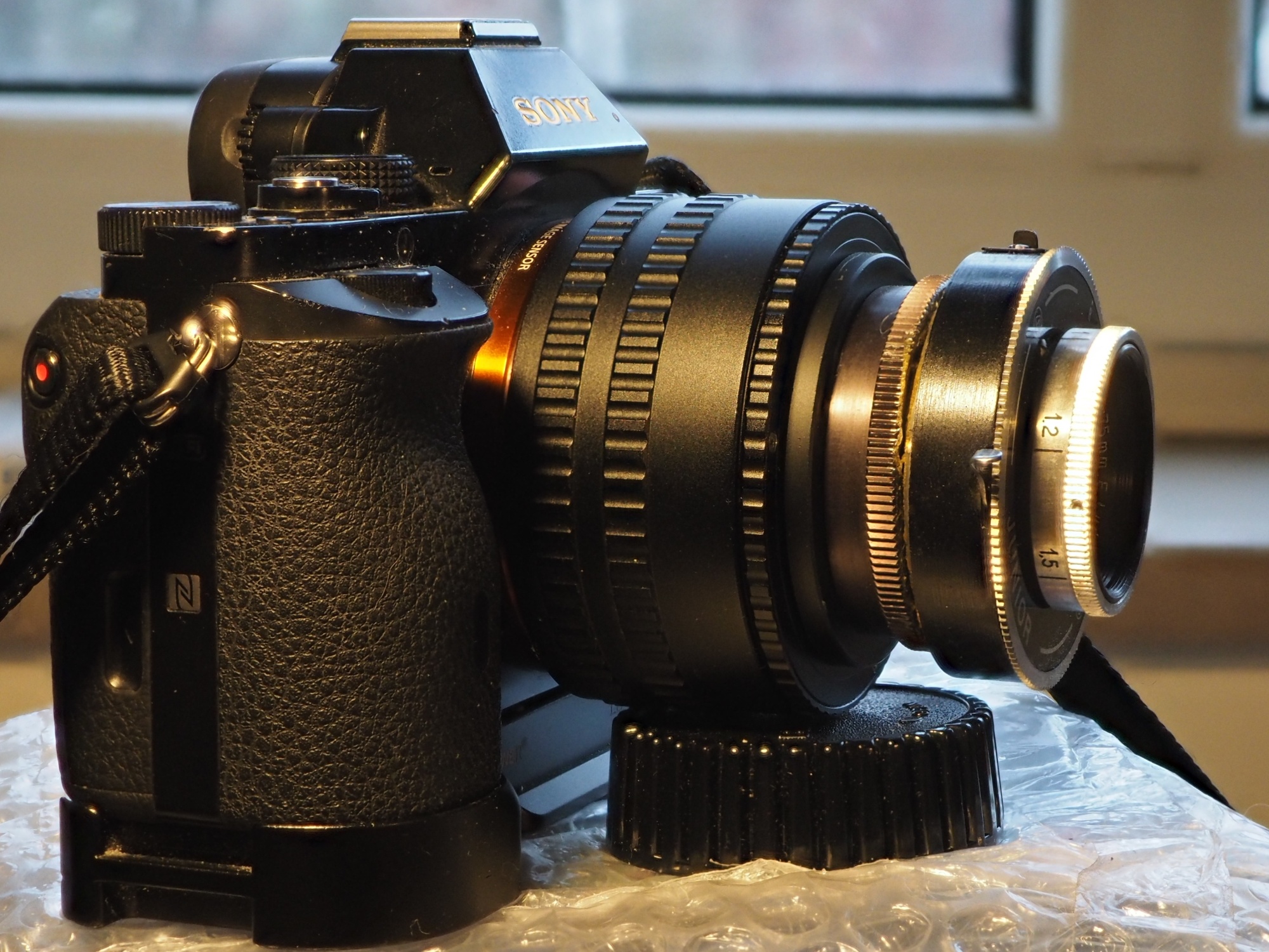 Also habe ich das Objektiv ausgebaut, den Verschluß stillgelegt, das Objektiv gesäubert, war etwas beschlagen, das Teil mit einem M42 Zwischenring verbunden und dann weiter zum Helicoid.
