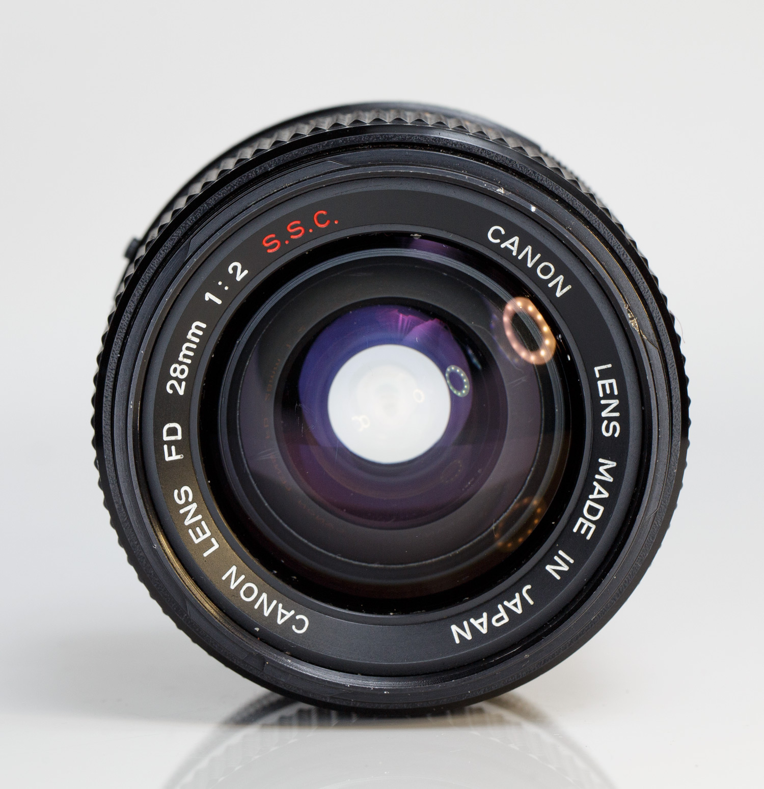 Bei seiner Markteinführung gesellte sich das mehrschichtvergütete FD 28 mm f/2 SSC zum nur einfach vergüteten FD 28 mm f/2,8 SC, das seinerseits den etwas lichtschwächeren Veteran FD 28 mm f/3,5 SC ersetzte.