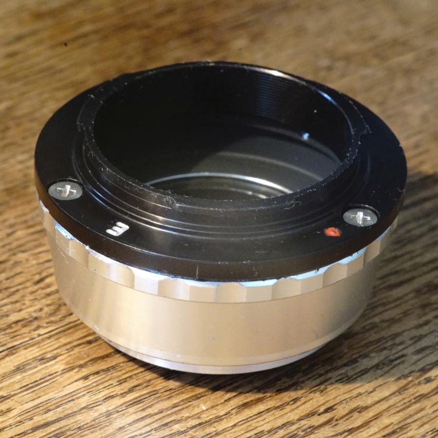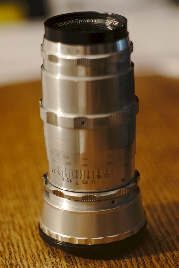 Schacht war auch Zulieferer für einige kleine Kamera-Hersteller wie Leidolf in Wetzlar. Daher ist dieses Travenar mit einem Anschluss für Lordomat Kameras ausgestattet. Den Adapter Lordomat /E-Mount habe ich mir aus den USA schicken lassen. Bilder sind mit Adapter. Leider ein wenig unscharf, ich hatte gerade das Jupiter 9 mit einen Makroring drauf :)