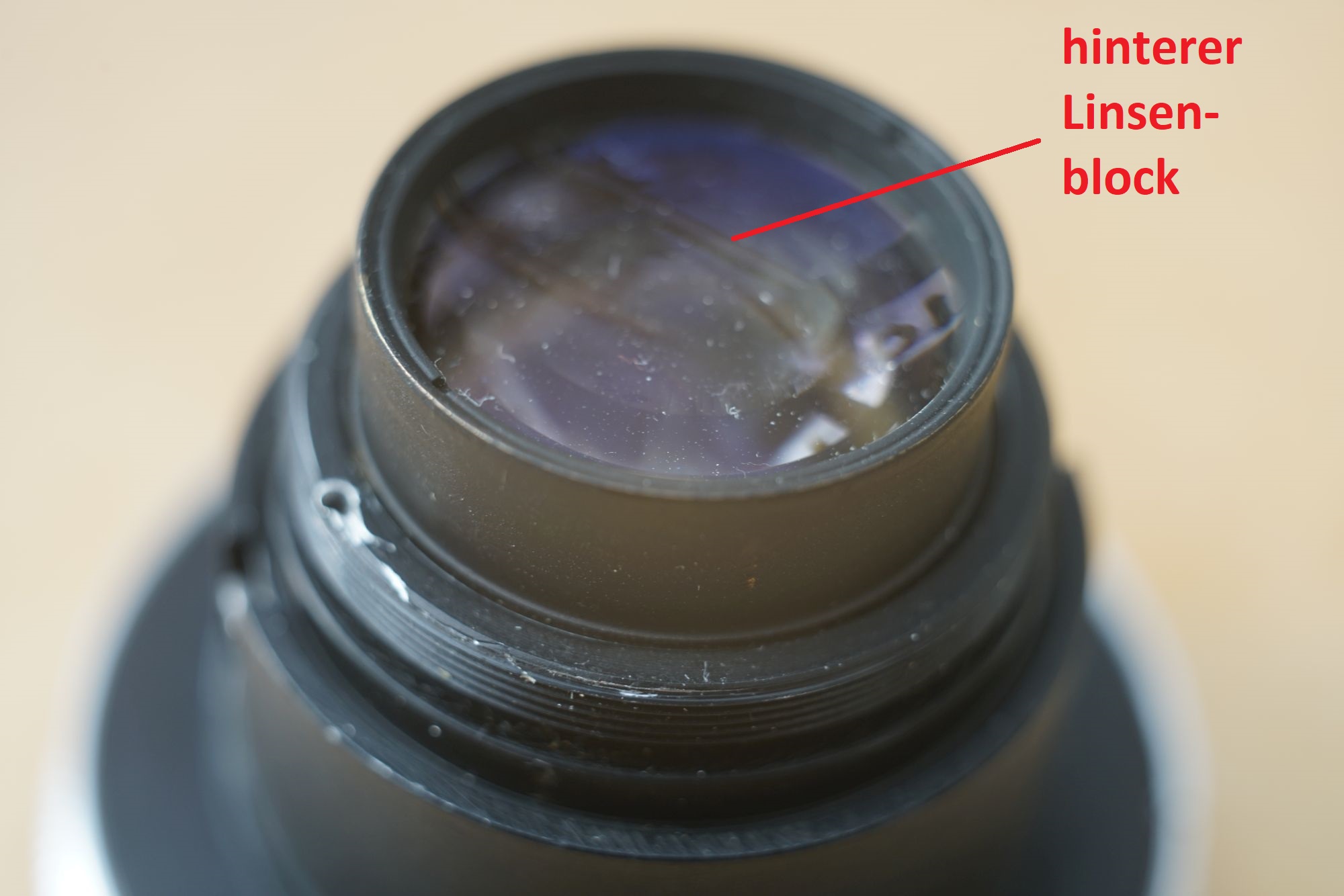 Der hintere Linsenblock läßt sich ohne Kraftaufwand herausdrehen.