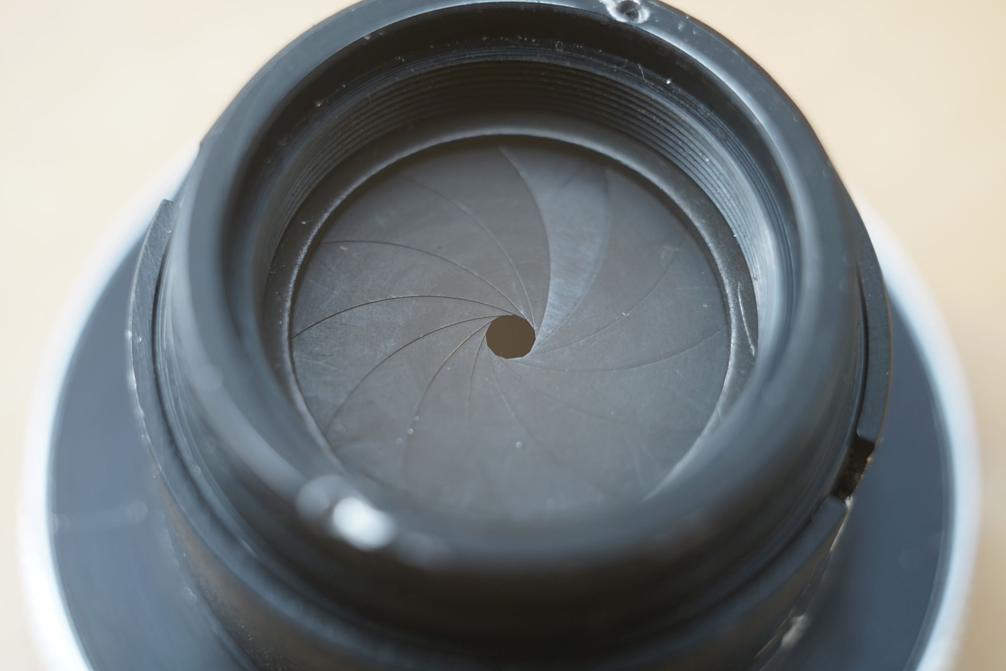 Die Blendenlamellen sind hier bereits wieder intakt, da ich ja den Zusammenbau dokumentiert habe.